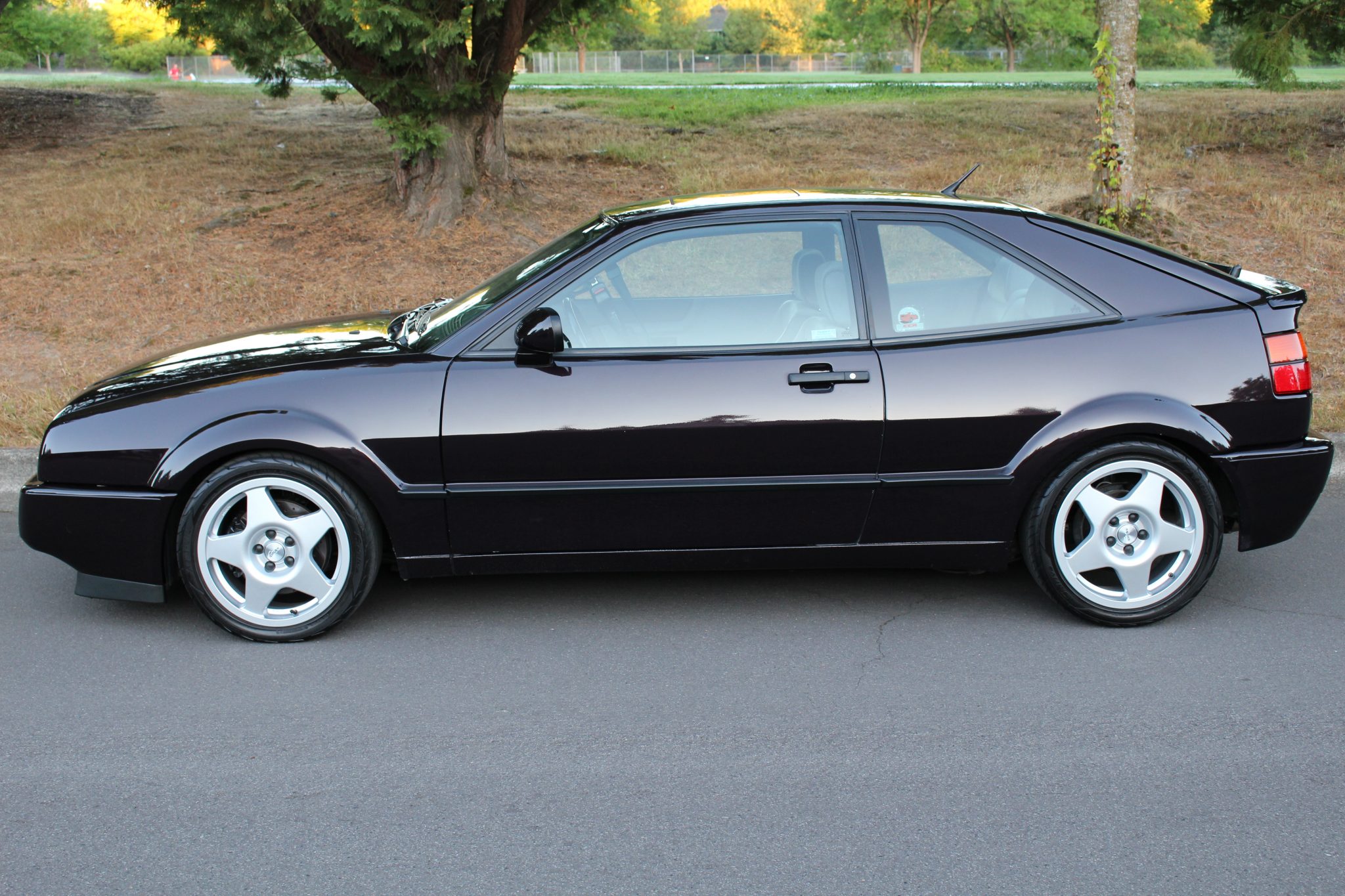 The 16″ Speedline wheels feature branded center caps and wear 215/40 Yokohama S.drive tires showing 2018 date codes. Adjustable KW Variant 3 Coilovers are fitted at all four corners, and the seller states that the car is equipped with AutoTech Sport Tuning sway bars, strut-tower braces, brake rotors, and braided hoses as well as a Black Forrest Industries rear stabilizer bar.