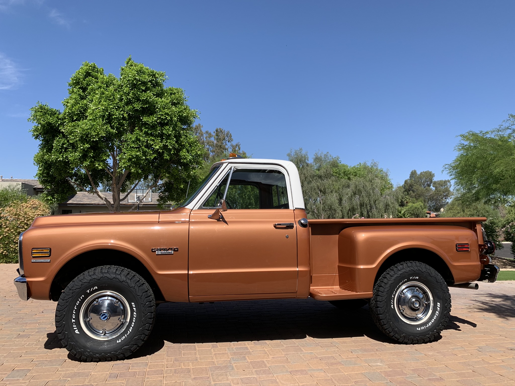 Steel 15″ wheels wear polished hubcaps and 33×10.5″ BFGoodrich All-Terrain T/A KO2 tires. Equipment includes front disc brakes, manually locking front wheel hubs, and Posi-traction front and rear axles.