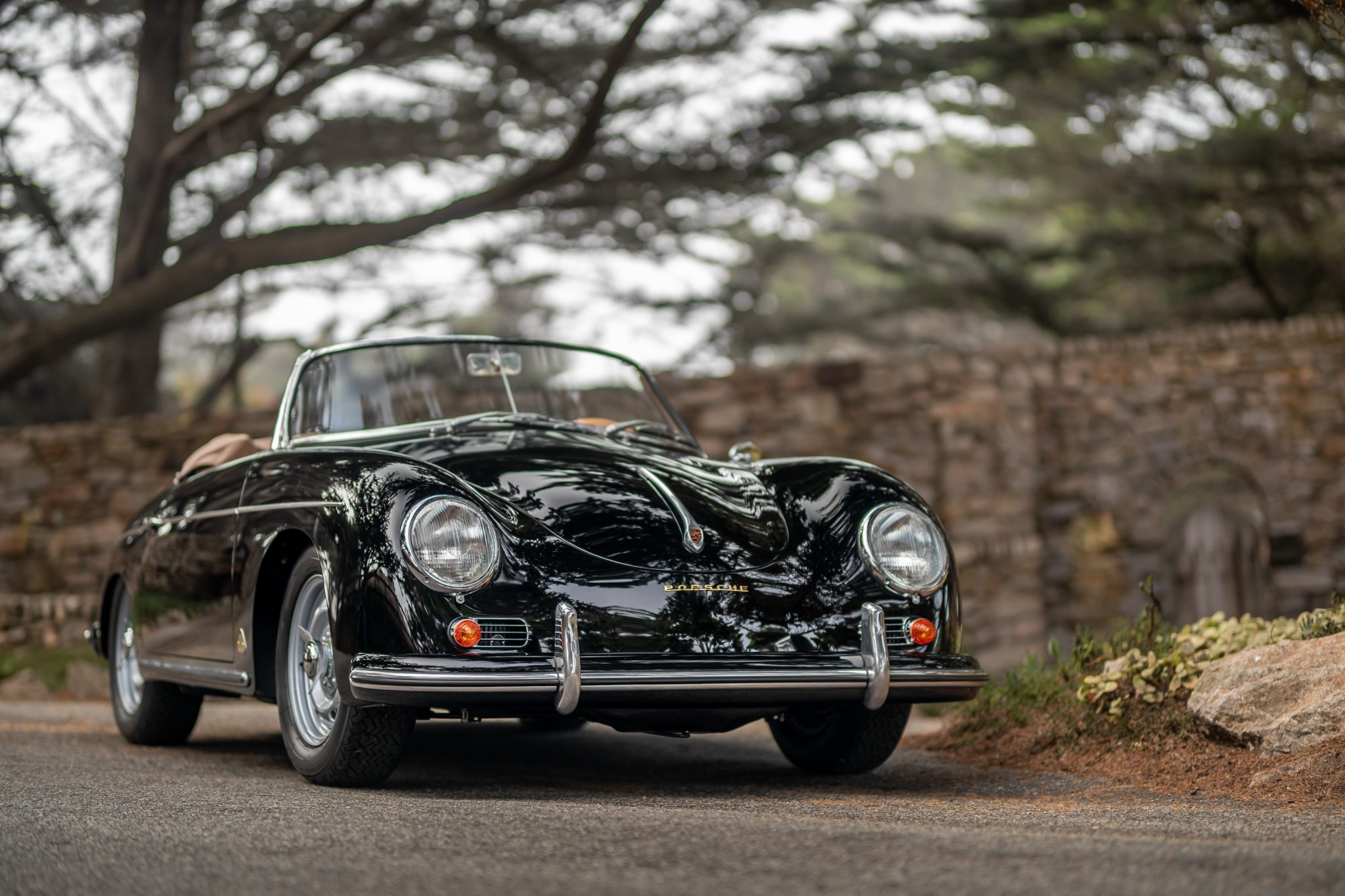 German Rudge 15″ wheels feature centerlock knockoff spinners and wear Pirelli tires. The hubs were reportedly mounted to the drums by Martin Willis at The Machine Shop of Colorado Springs, Colorado, and the suspension and brake system are said to have been overhauled during the refurbishment.