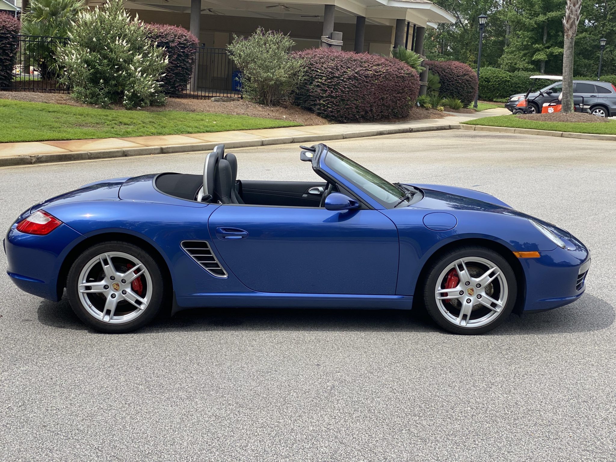 The 18″ five-spoke wheels wear colored Porsche crests and Michelin Super Sport tires measuring 235/40 in the front and 265/40 at the rear. Red-finished calipers and drilled rotors are equipped all around.