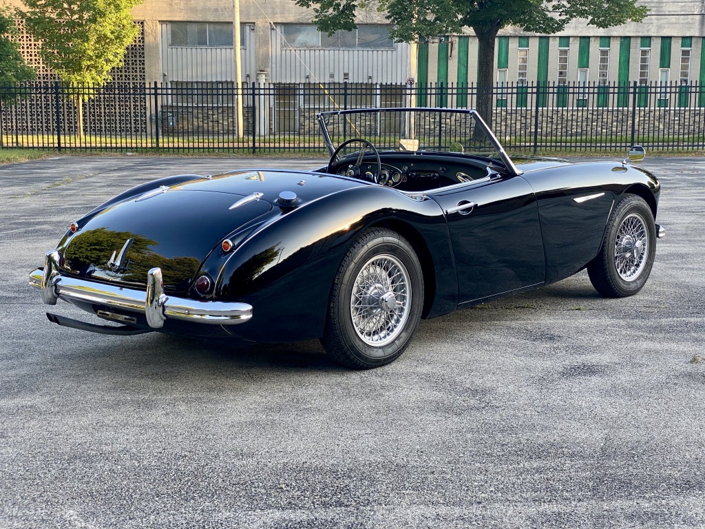 Painted 60-spoke 15″ knock-off wire wheels were fitted with Michelin XZX tires in 2019, and a spare is mounted behind the seats. Braking is handled by front discs and rear drums. A new black soft top and frame, side curtains, and tonneau cover are included in the sale and can be seen shrink-wrapped in the gallery below.