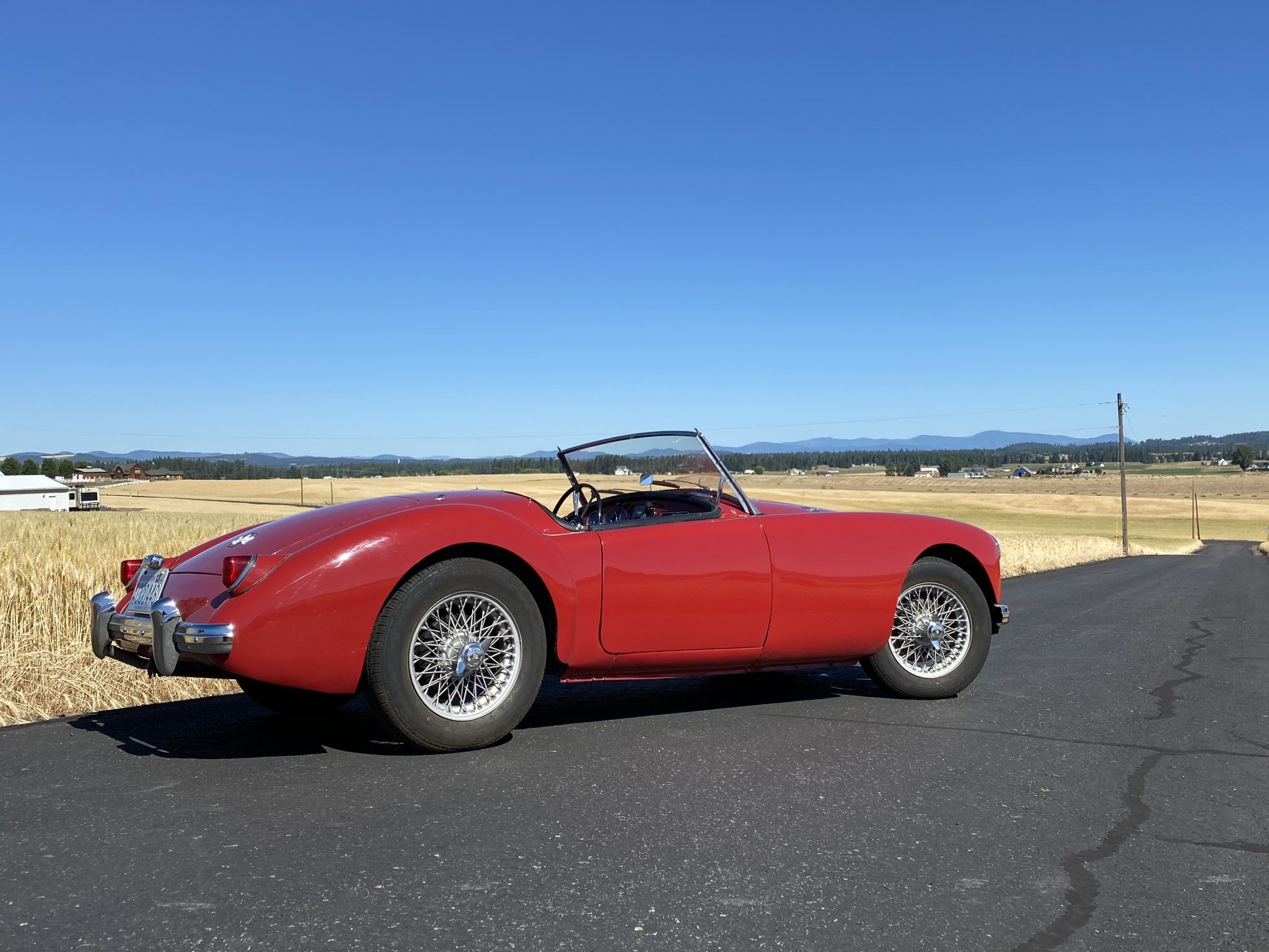 Silver-painted 15″ wire wheels wear two-eared knock-off spinners and are mounted with 165/80 Federal tires that the seller states were mounted in 2014. The MGA features independent front suspension and a live rear axle with drum brakes at all four corners. Work completed by the seller is said to have included brass-sleeving the hydraulic cylinders.