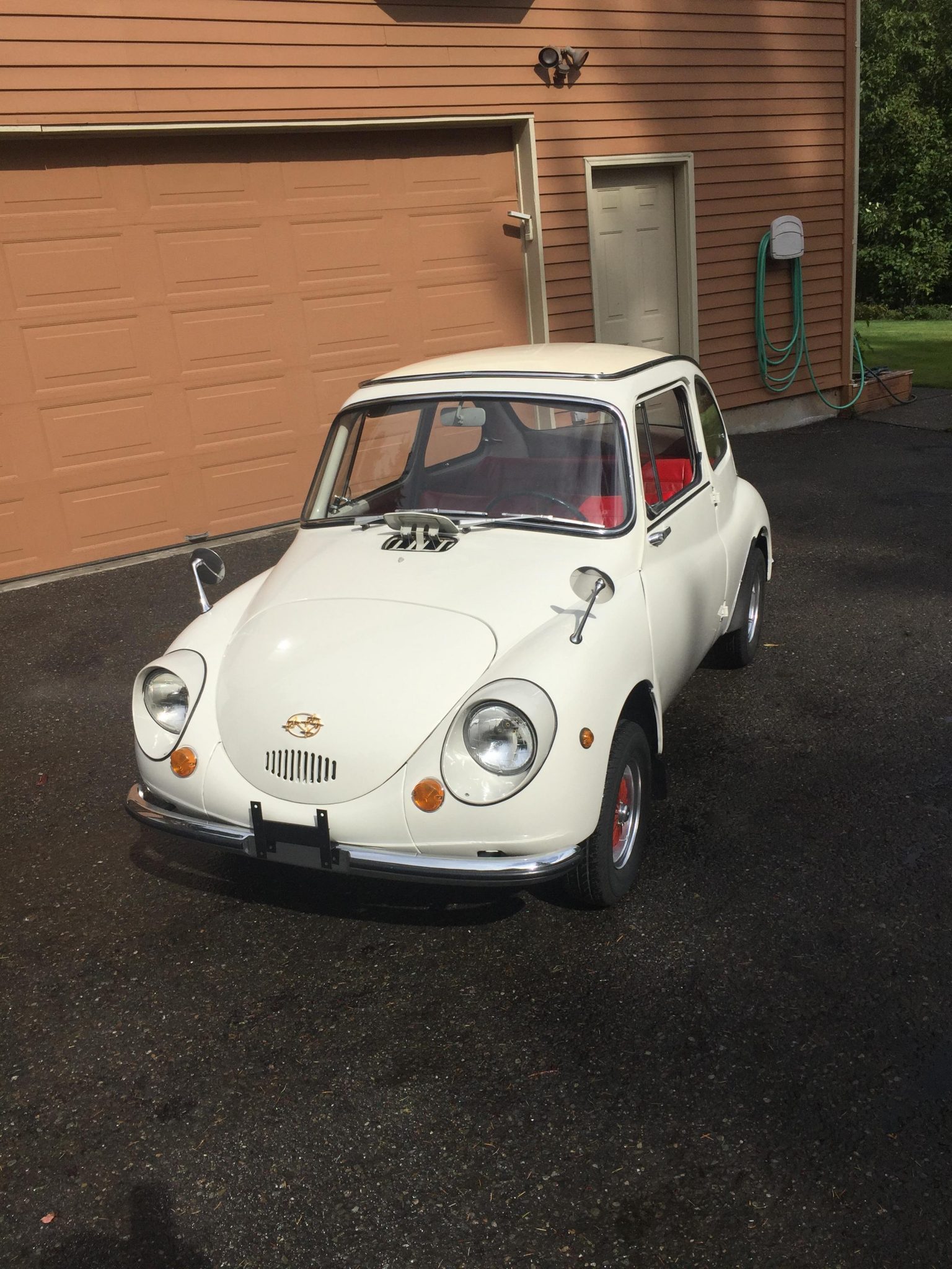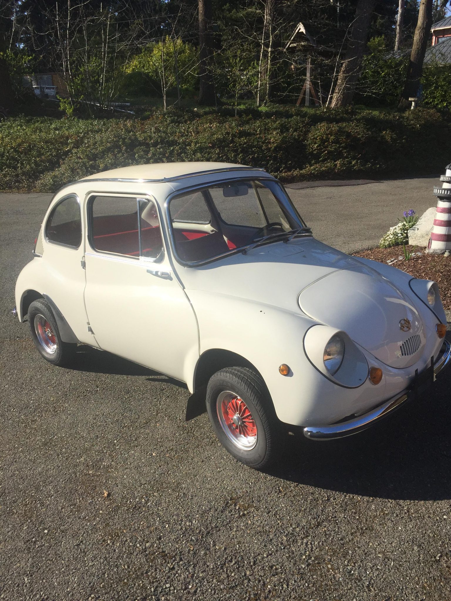 The car is equipped with rear-hinged doors, dual fender mirrors, and painted steel 10″ wheels that are bolted directly to the finned brake drums, which were turned and repainted red by the seller. The front wheel bearings are also said to have been replaced. 145/80 Kumho Power Star 758 tires are mounted at all four corners. A set of stock hubcaps is included in the sale.
