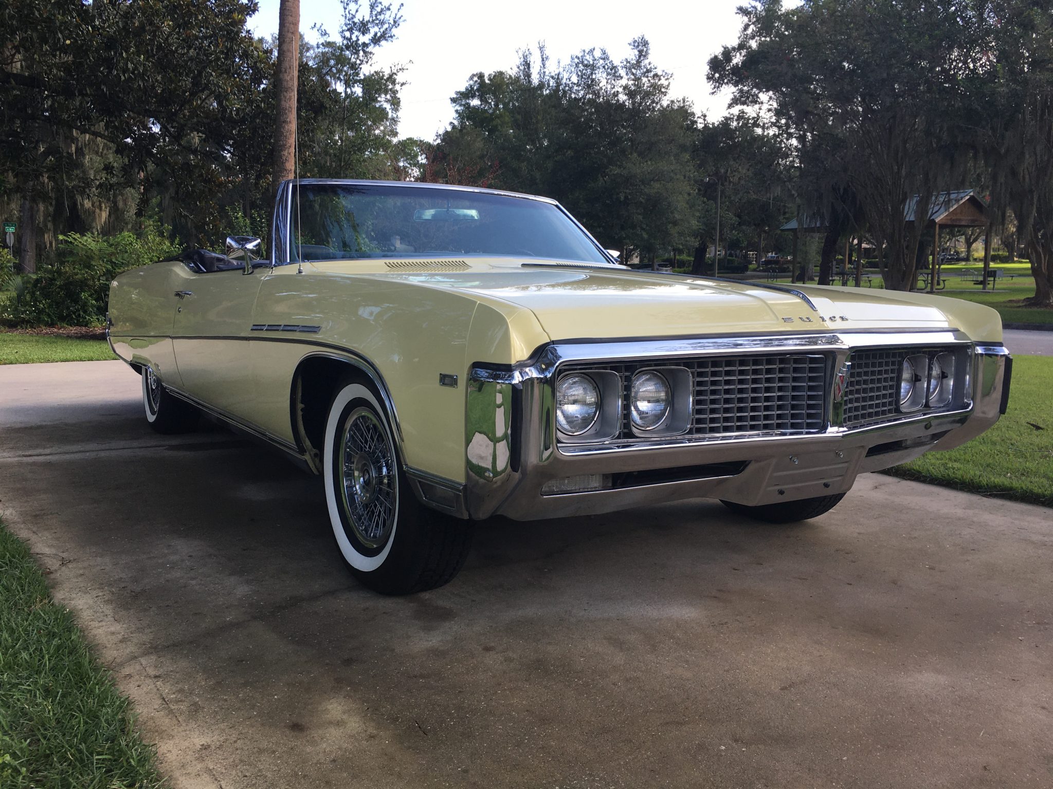 Steel wheels wear full Buick faux-wire covers and 15″ American Classic whitewall tires. The trunk-mounted spare is protected by a worn cover.