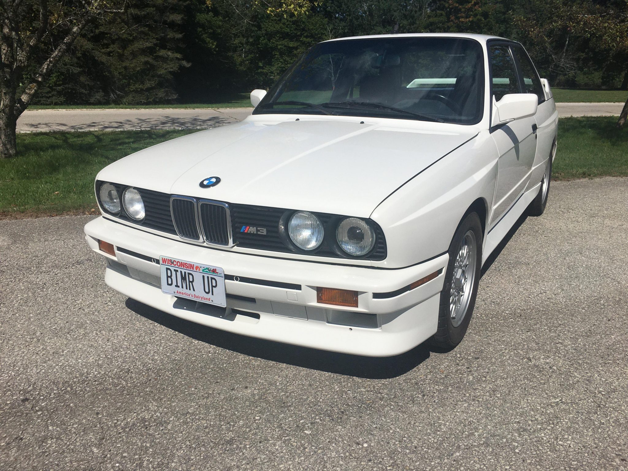 Factory 15″ BBS basketweave wheels are wrapped in 225/50 Toyo Proxes RA1 tires showing 2010 date codes. The braking system features power-assisted four-wheel discs as well as braided stainless-steel lines and M3 Sport Evolution–style brake-cooling ducts in place of the factory driving lights.