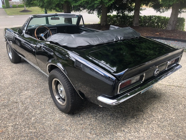 Black 15″ Rally wheels wear polished beauty rings, Chevrolet hubcaps, and Grand Prix Performance GT all-season tires. Wilwood disc brakes have been fitted to the front and rear by the seller, who has also installed replacement shocks and ball joints.