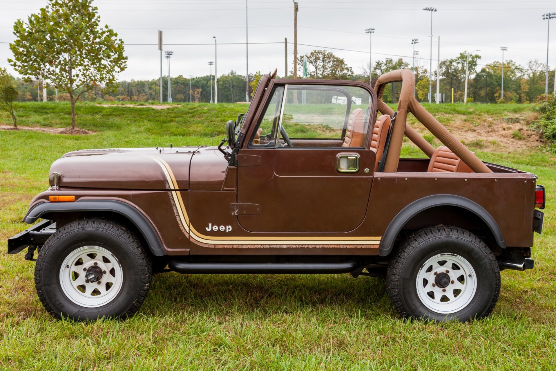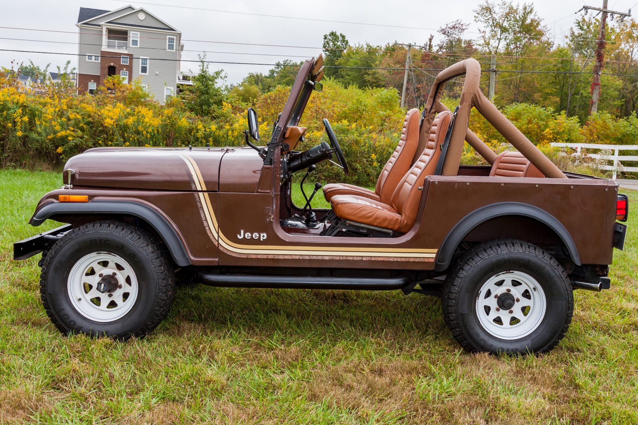 White-painted steel wheels are mounted with 31″ Big O Foot Foot all-terrain tires at each corner. The braking system was refreshed with replacement rotors, pads, shoes, and drums during current ownership, while additional work is said to have included installing replacement shocks and a steering damper and stabilizer.