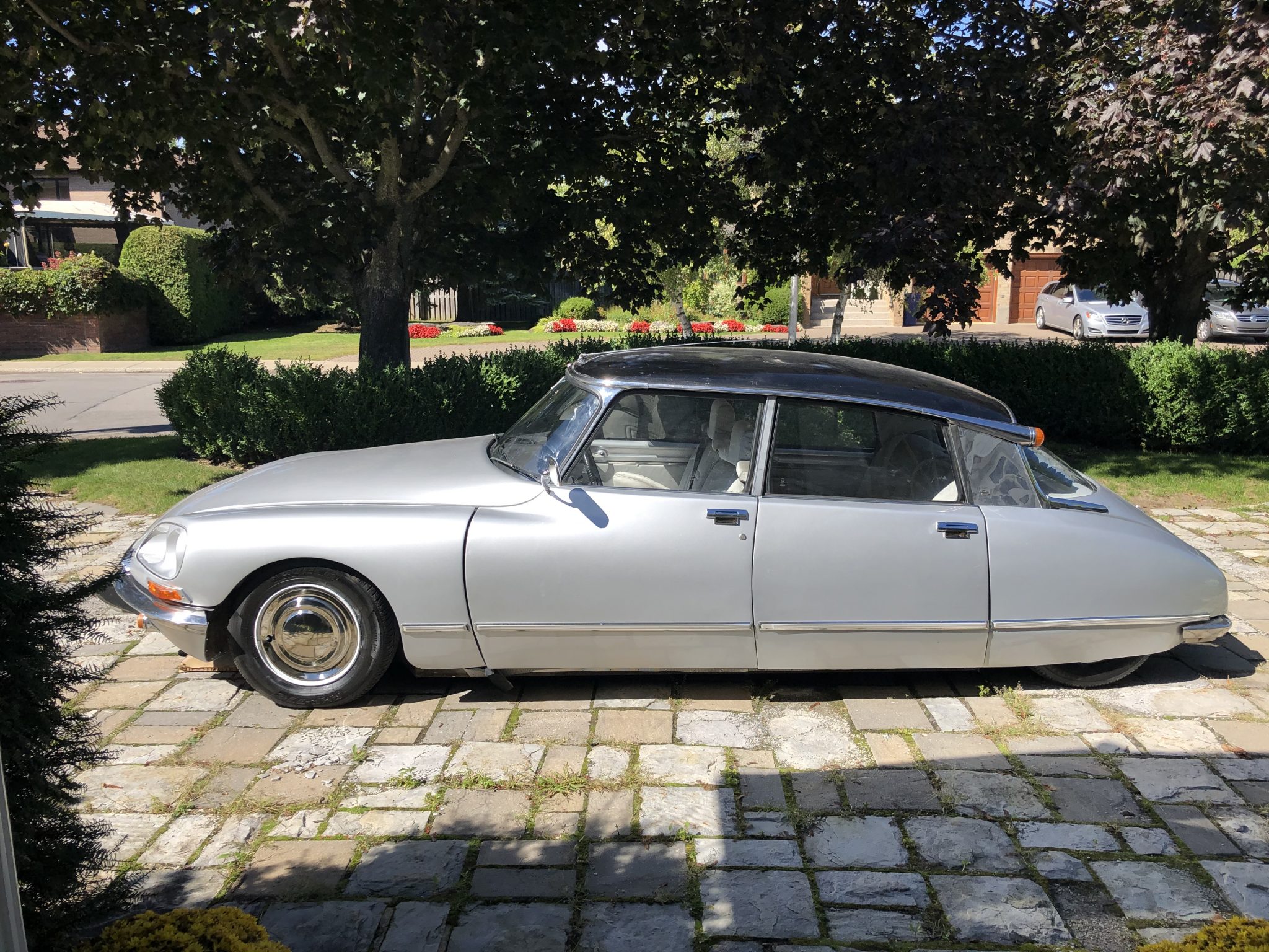 15″ steel wheels wear replacement chrome hubcaps and are wrapped in 205/65 radial tires. Standard equipment included self-leveling hydropneumatic suspension, power steering, and power-assisted brakes with inboard-mounted front discs and rear drums.