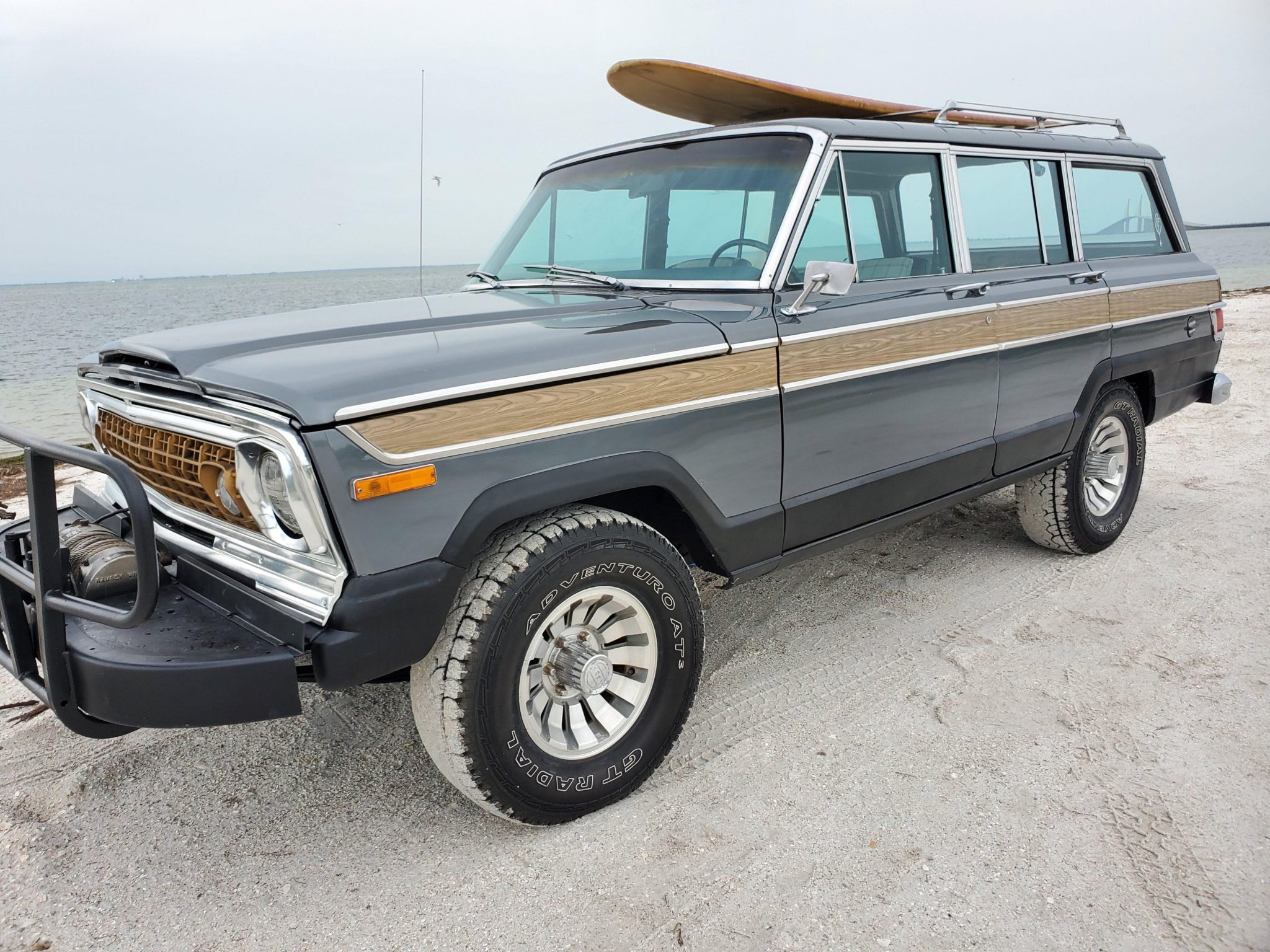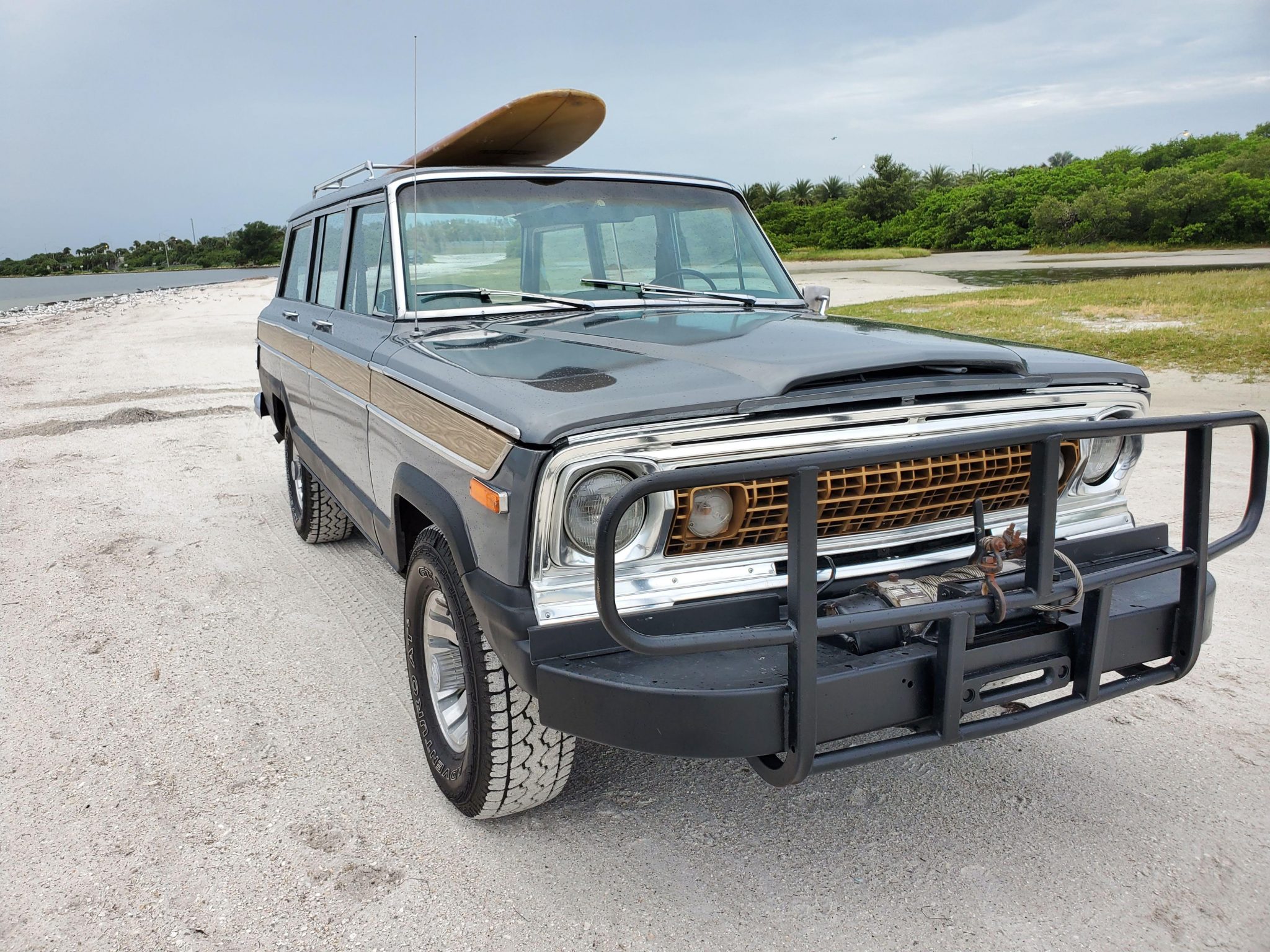 The 15” six-lug wheels are fitted with Jeep center caps and wear GT Radial Adventuro AT3 tires. Disc brakes are equipped up front, while drums are retained out back. Installation of replacement shocks and a brake service including replacement brake lines were reportedly completed during current ownership. The surfboard shown in the photos is not included in the sale.