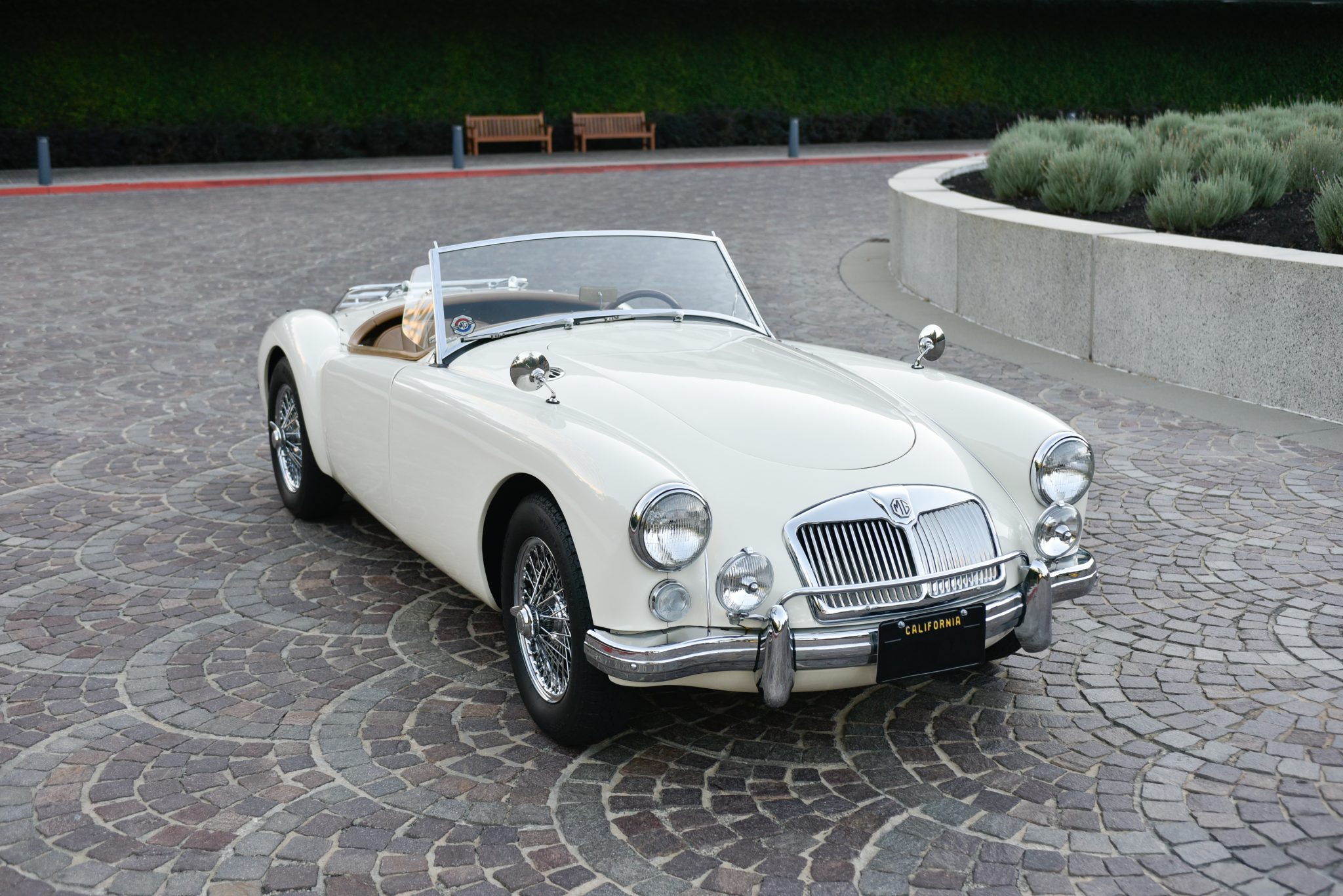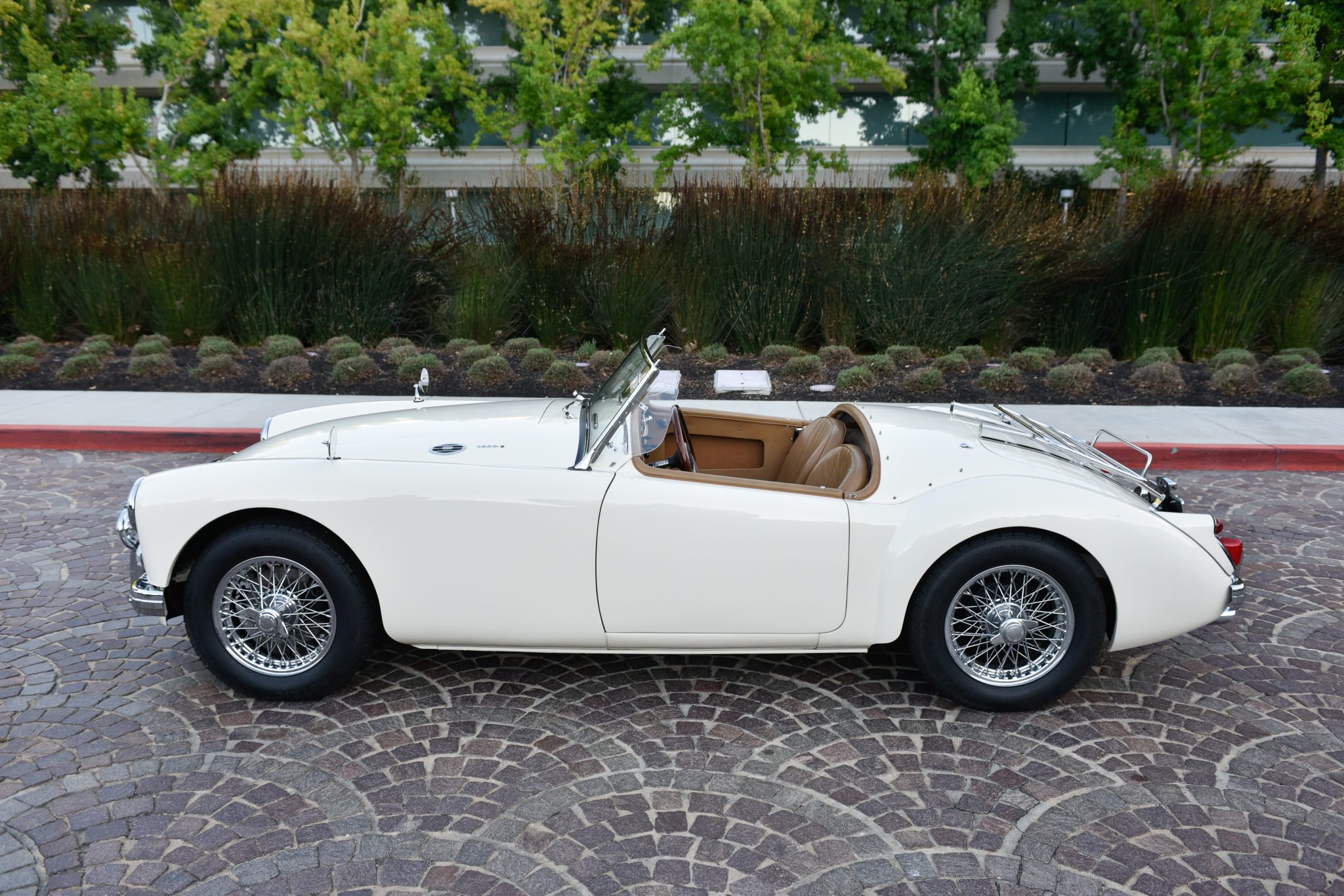 Chrome 15″ wire wheels are fitted with two-eared knock-off spinners and wear Kelly Metric radial tires. Braking is provided by discs up front and drums at the rear. A beige tonneau cover and soft top are included in the sale along with side curtains with an accompanying vinyl storage bag.