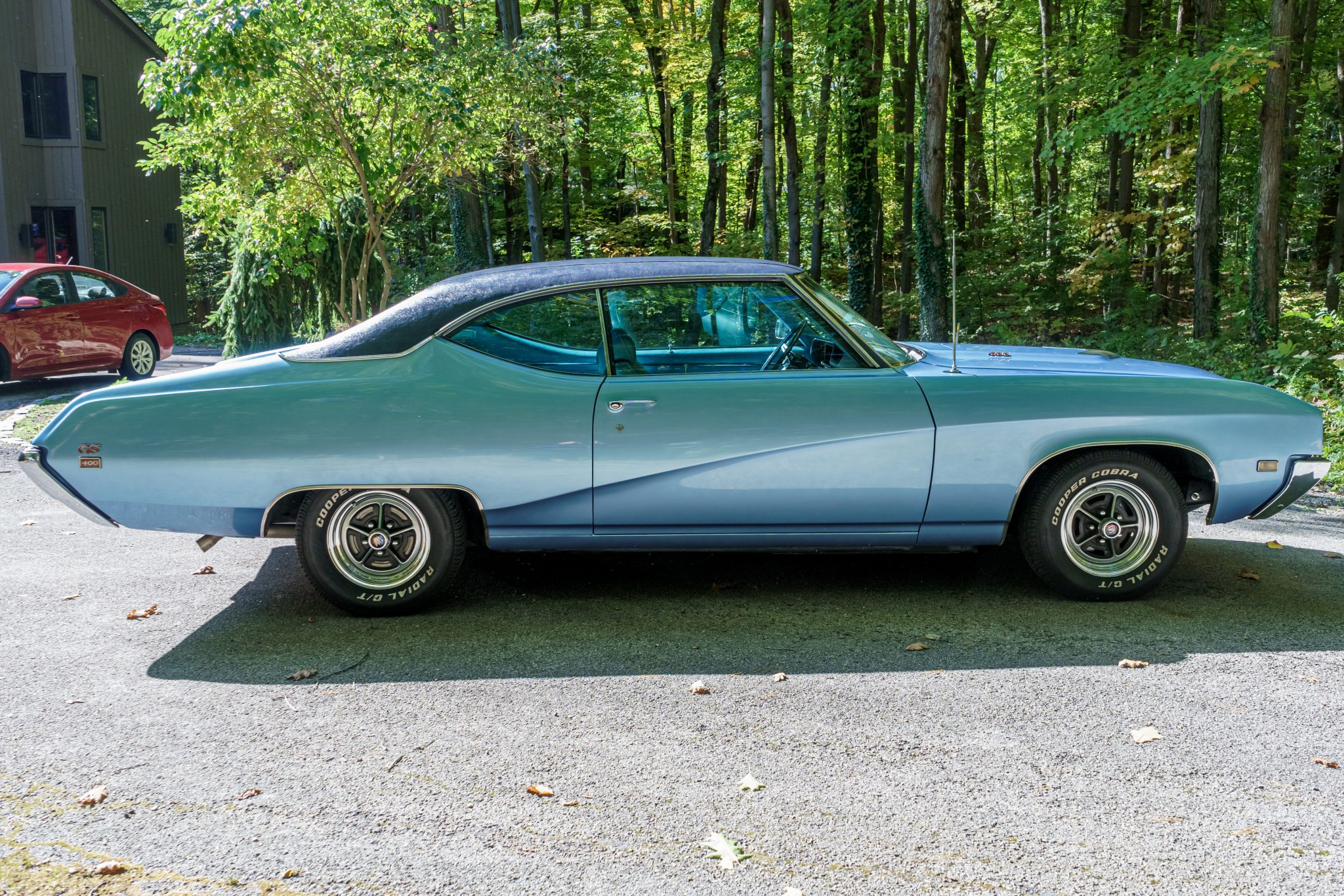 Polished 14″ Buick Rallye wheels with Buick-branded centers are mounted with Cooper Cobra tires. A full-size spare mounted with a Remington tire is located in the trunk. Power-assisted disc brakes are complemented by rear drums, and the selected Rallye Ride Control package (F41) featured firmer shocks and springs.