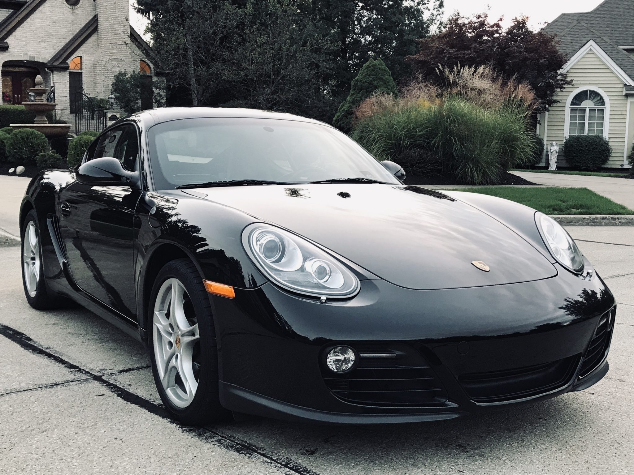 Optional 18″ Cayman S II wheels wear colored Porsche crests and are wrapped in Continental tires. Stopping power is provided by gray brake calipers with white Porsche lettering fitted over cross-drilled rotors at each corner.