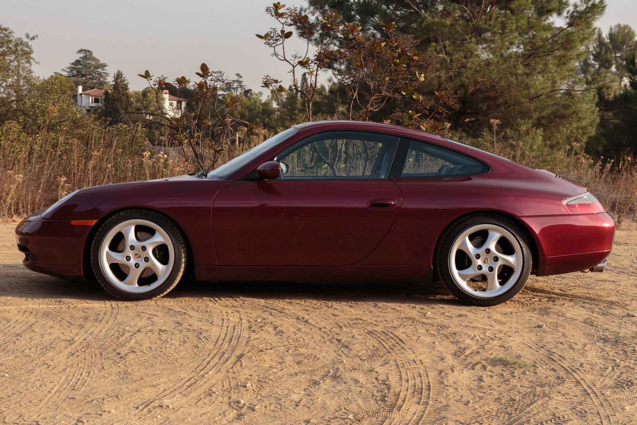 Factory 18” Turbo-look wheels wear Porsche-crest center caps and are wrapped in Michelin Pilot Sport tires that were manufactured in 2019. H&R lowering springs have been added, and the braking system features four-piston alloy calipers paired with vented and cross-drilled rotors. The brake fluid was flushed and the front hood shocks were replaced in December 2019.