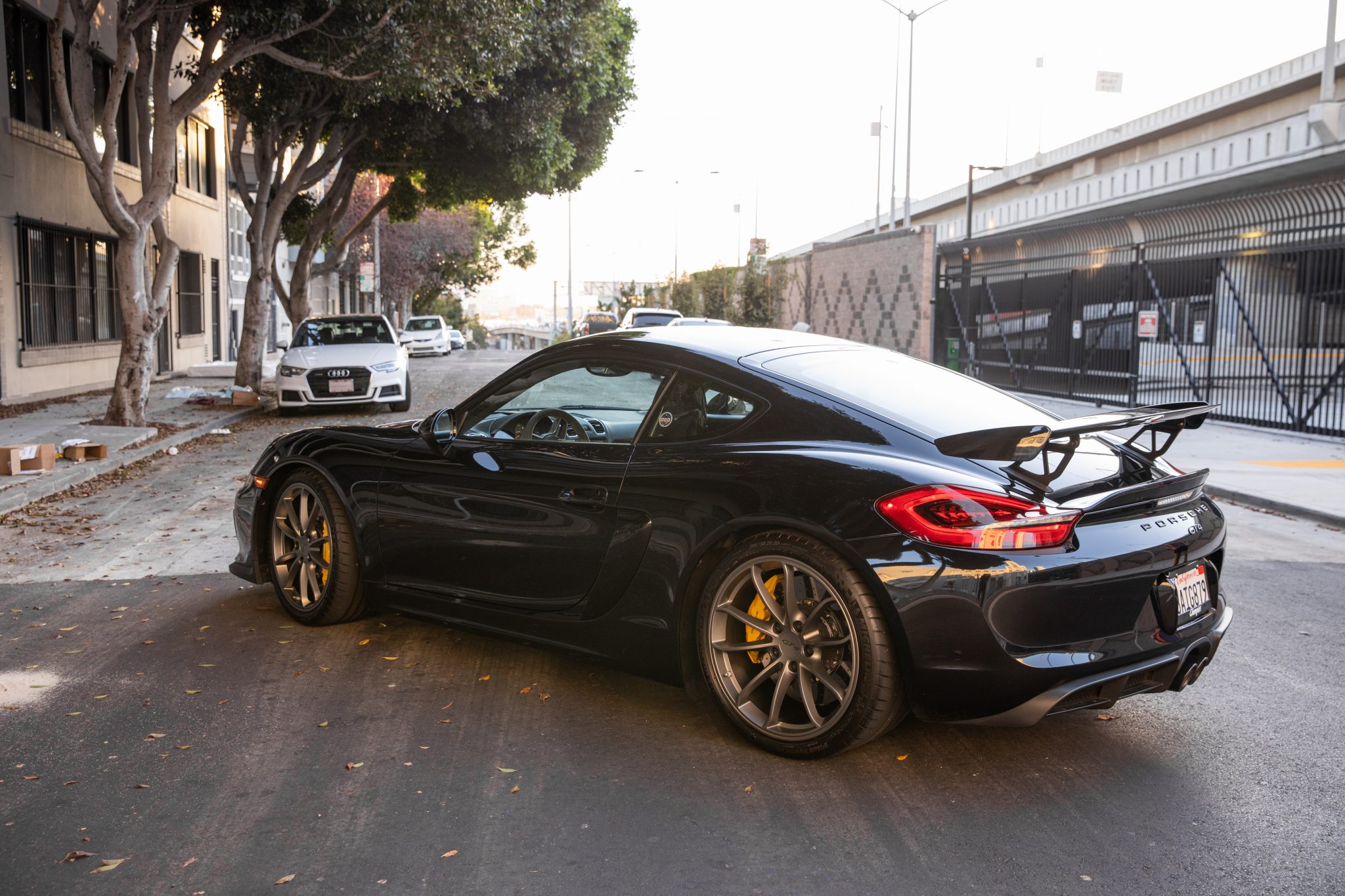 Factory 20” wheels are wrapped in 245/35 and 295/30 Michelin Pilot Sport Cup 2 tires that were installed in June 2019. The GT4 utilized the front suspension from the 991.1 GT3 as well as a specially-tuned LSA multi-link rear setup, and stopping power is provided by optional Porsche Ceramic Composite Brakes with yellow calipers. A brake fluid flush was carried out in May 2020.