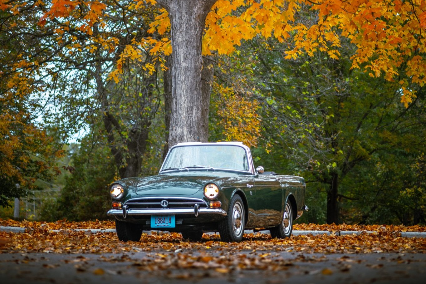 13″ steel wheels wear chrome hubcaps and period slotted beauty rings, and are wrapped in 185/80 Maxxis MA-1 thin whitewall tires. Braking is handled by power-assisted front discs and rear drums, and the seller states that refurbishment work in the late 1990s included a front suspension overhaul as well as a brake system overhaul with a rebuilt booster and master cylinder, replacement brake lines, wheel cylinders, and replacement pads and shoes. Welded “Traction Masters” traction bars are installed on the rear axle.