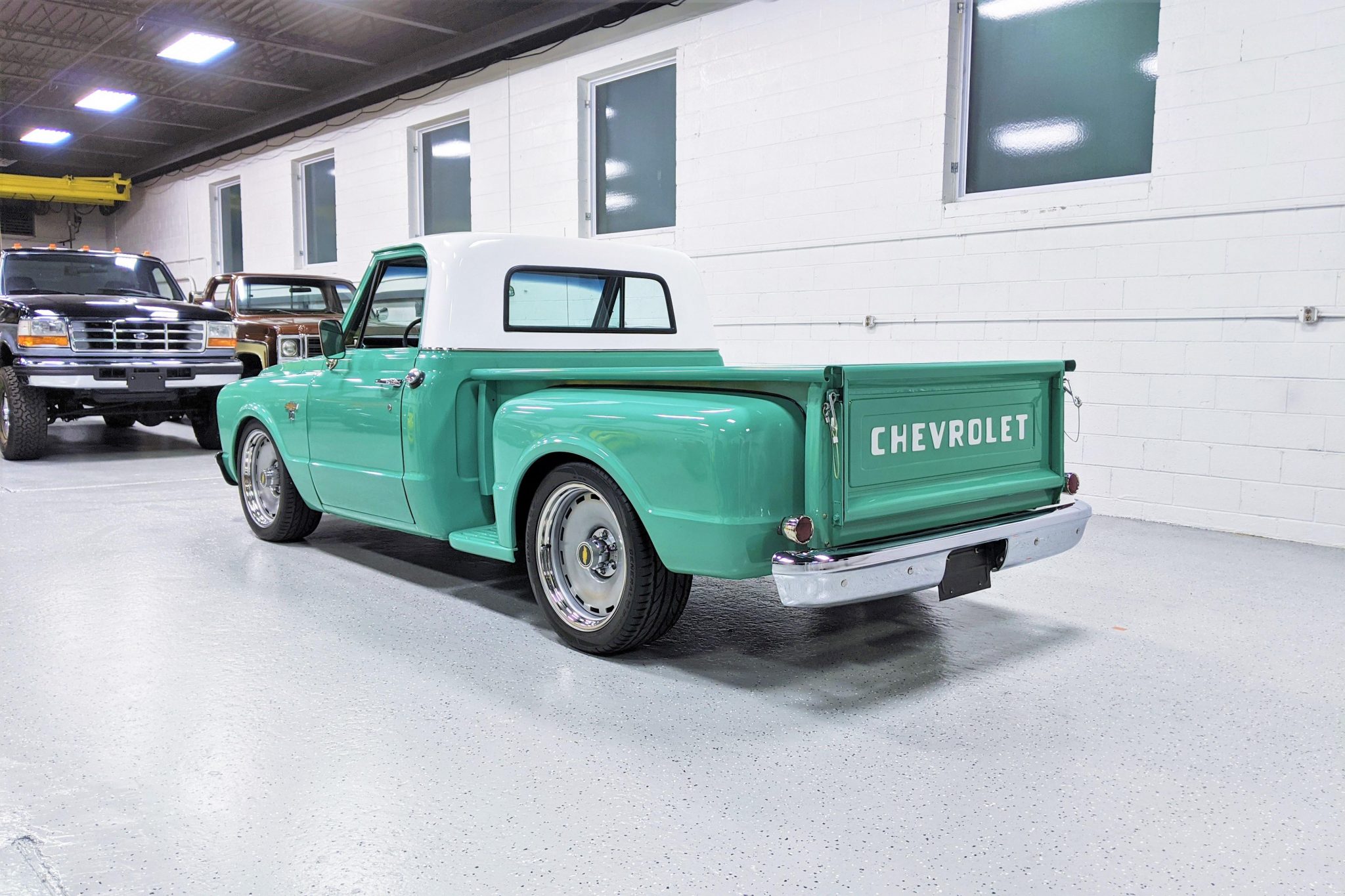 Staggered-width 20″ Detroit Steel wheels are fitted with General G-max tires measuring 245/45 in front and 275/40 at the rear. Drop springs, power steering, and power-assisted front disc brakes are featured.