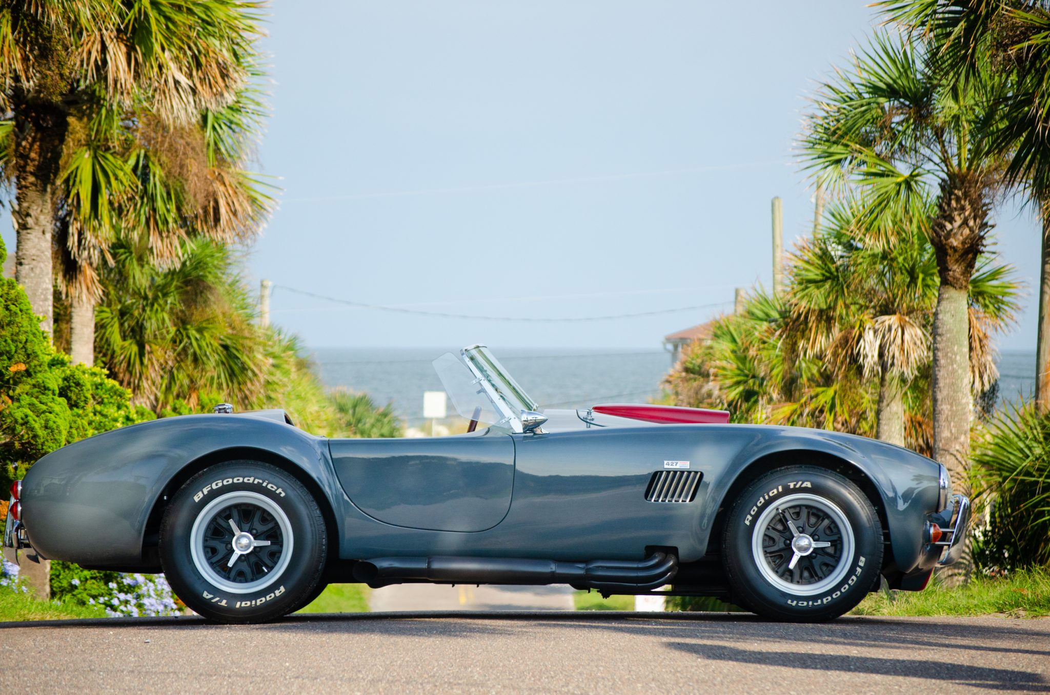 The Halibrand-style 15″ Compomotive multi-piece wheels feature faux knock-off hubs and are mounted with BFGoodrich Radial T/A tires. The Everett-Morrison chassis features a fully-independent suspension that utilizes components sourced from a Jaguar XKE, as well as rear coilovers and GAZ front shocks, the latter of which were installed in 2020. Braking is handled by a Wilwood master cylinder and disc brakes at all four wheels.