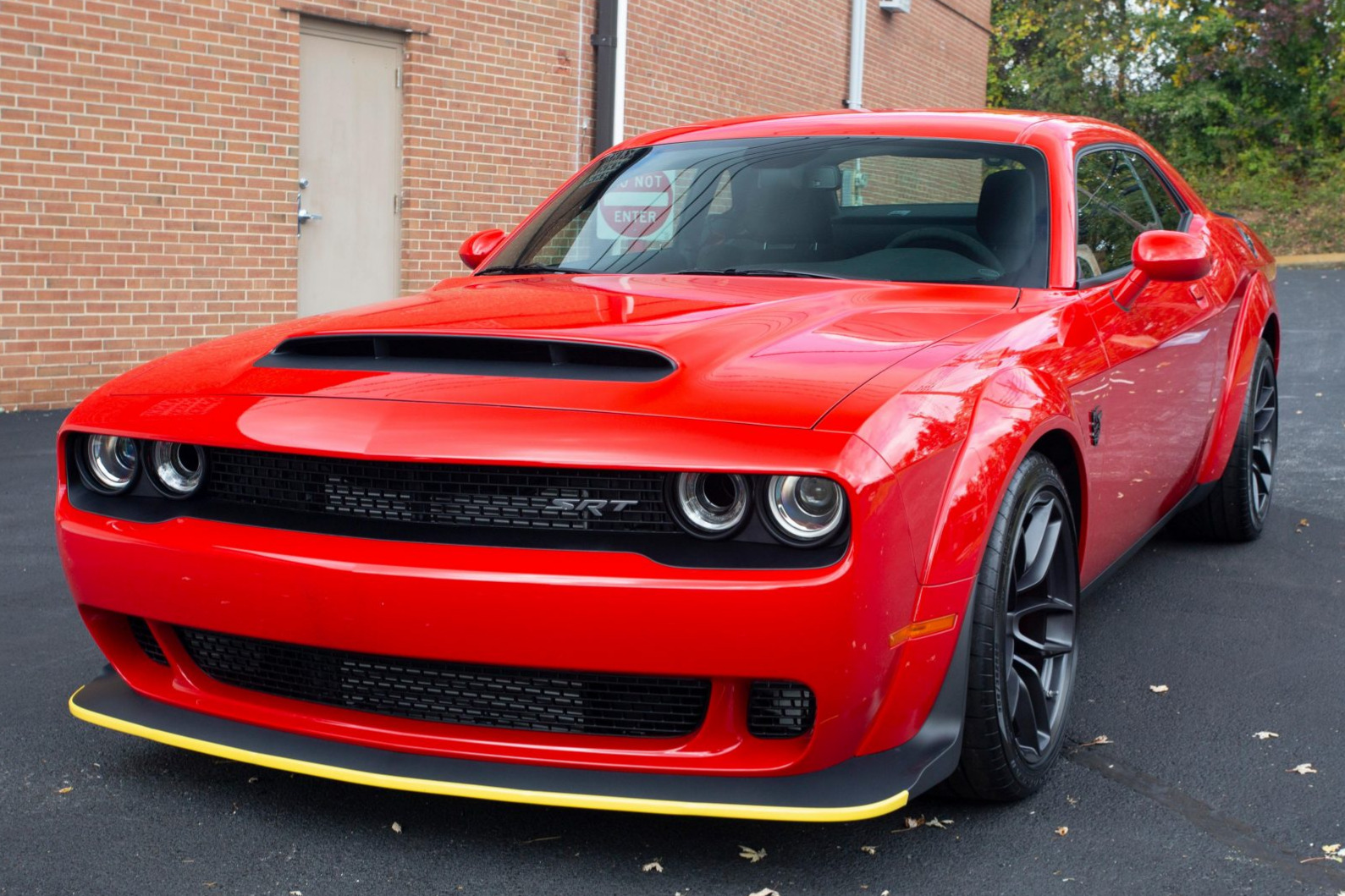 Black 20″ “Devil’s Rim” wheels are mounted with 305/35 Goodyear Eagle F1 tires. The Drag Mode suspension features adaptive damping, electronic stability control, and all-speed traction control. The car is equipped with a line lock, and braking is from slotted rotors and red Brembo calipers all around. The removed factory 18″ wheels are included in the sale.