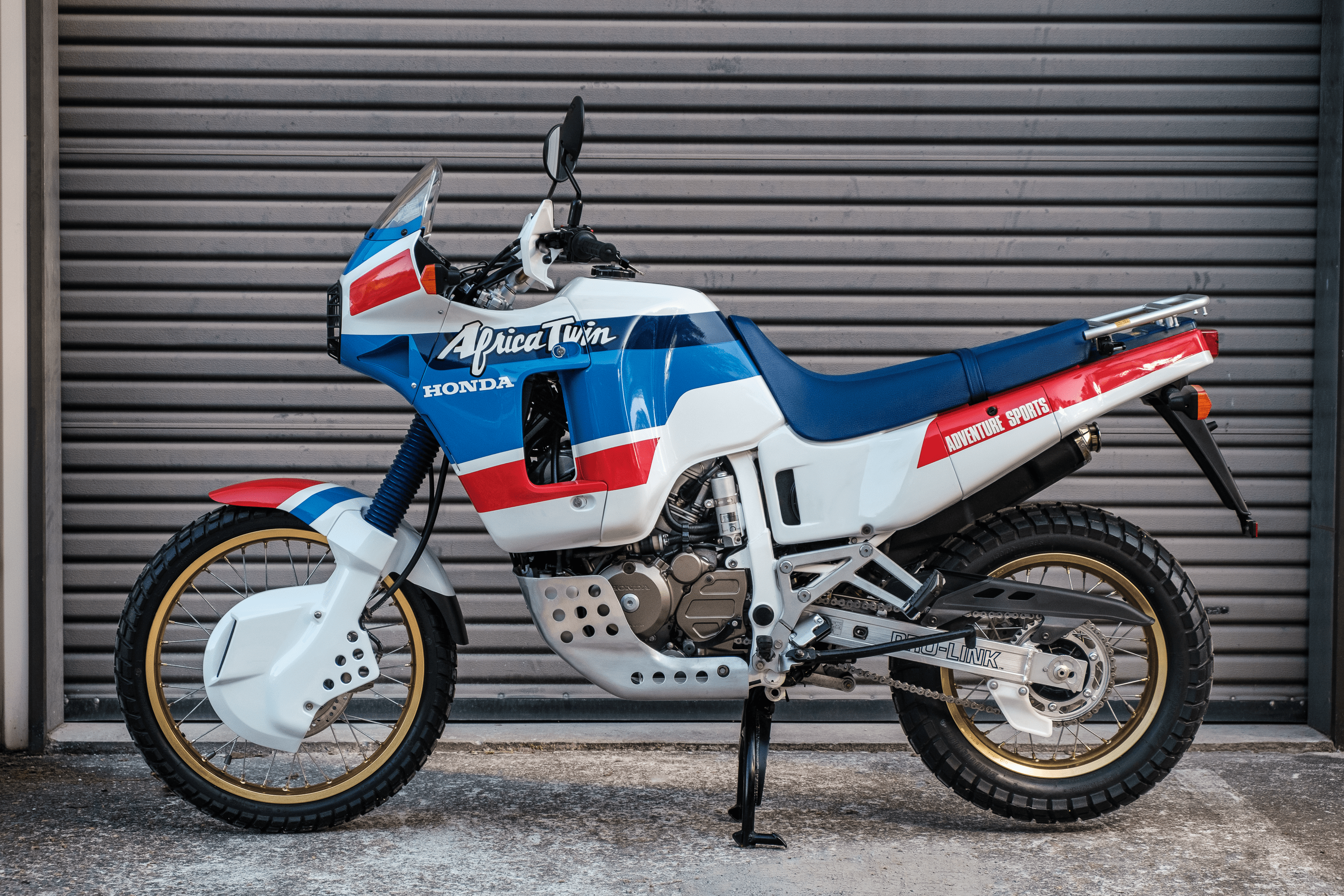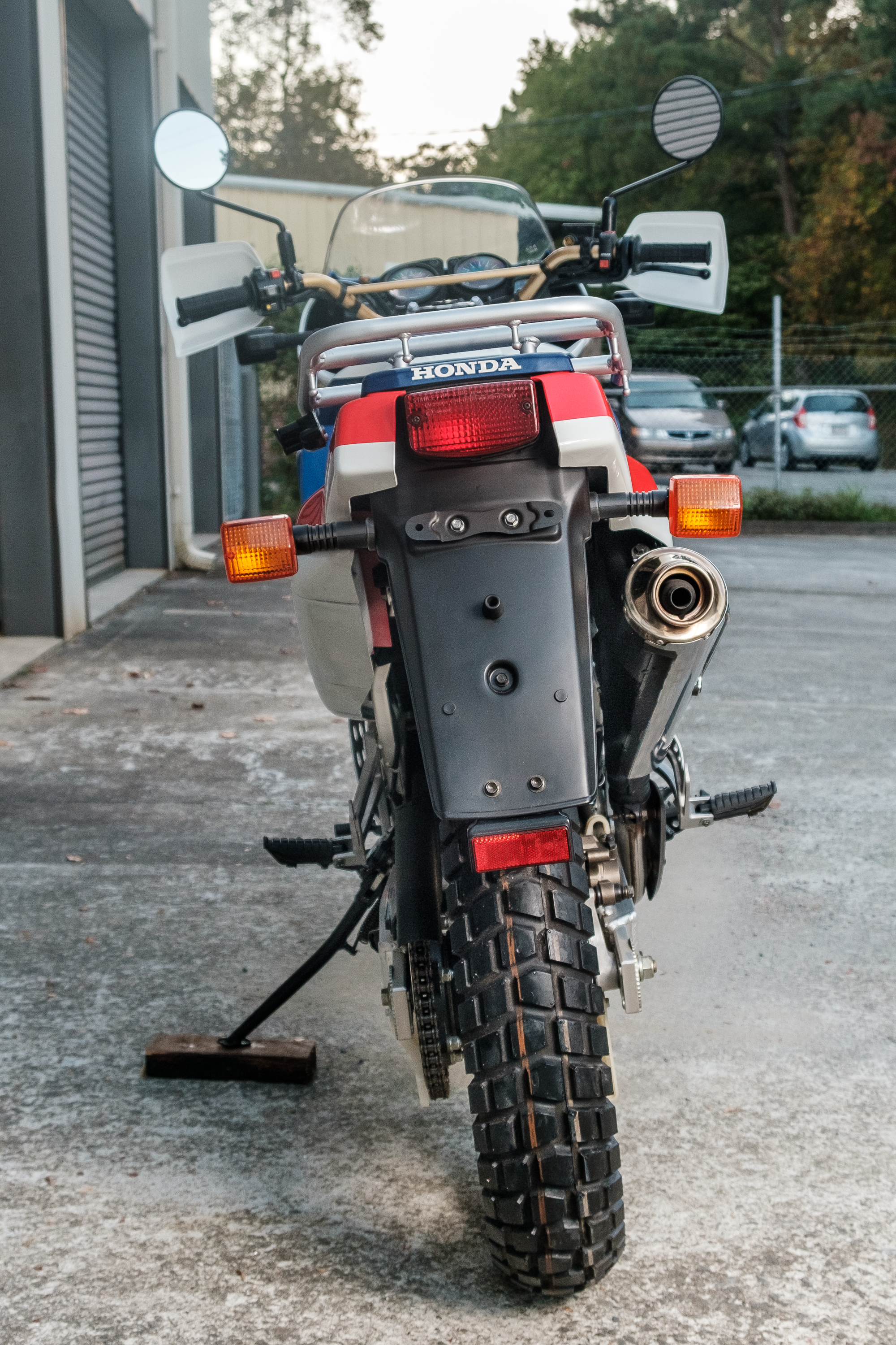 Wire-spoke wheels with gold-colored rims wear dual-sport Bridgestone tires measuring 90/90-21 front and 130/90-17 rear. Suspension consists of an air-adjustable 43mm Showa telescopic fork with 9″ of travel and a Pro-Link rear swingarm mounted to a hand-adjustable monoshock with 8.25″ of travel. Braking is from shielded discs at both ends.
