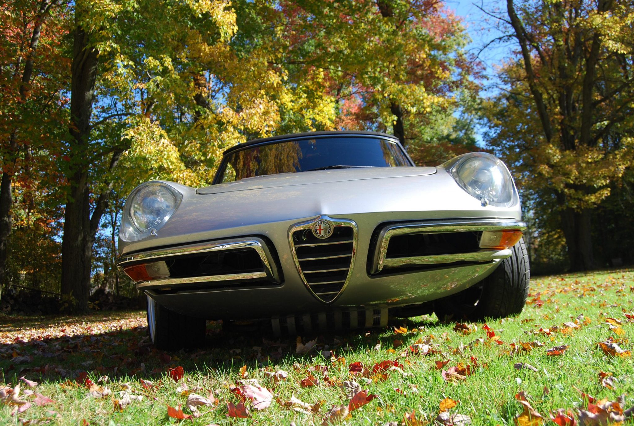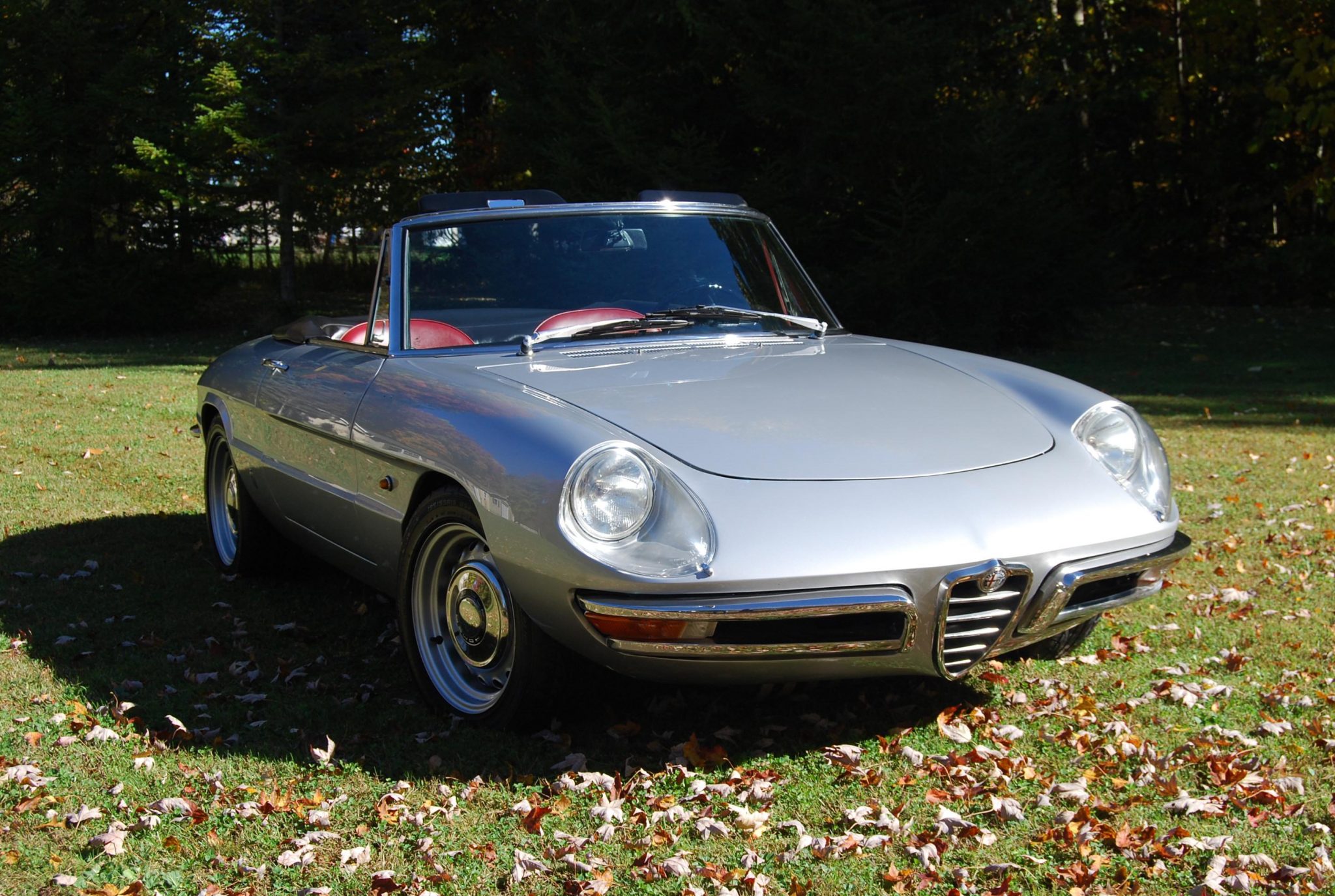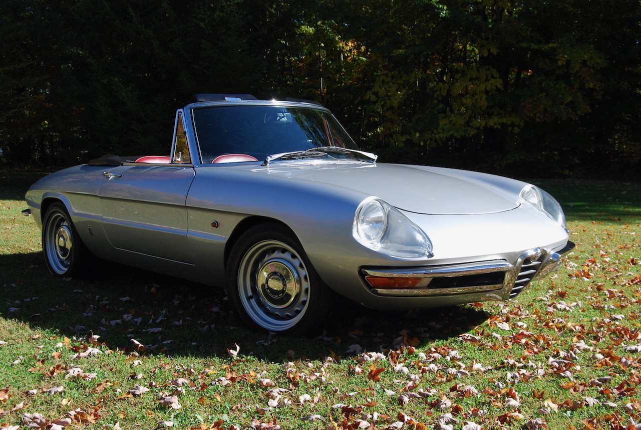 The 15″ wheels were increased in width to 6.5″ and wear polished hubcaps along with Dunlop Direzza DZ101 tires. The front suspension reportedly utilizes components from a 1970s Alfa Romeo Spider, while the rear axle is from an earlier Spider. Centerline yellow sport springs have been added, and braking is handled by four wheel discs with ATE calipers, a replacement master cylinder, and replacement lines. An alignment was carried out in August 2020.