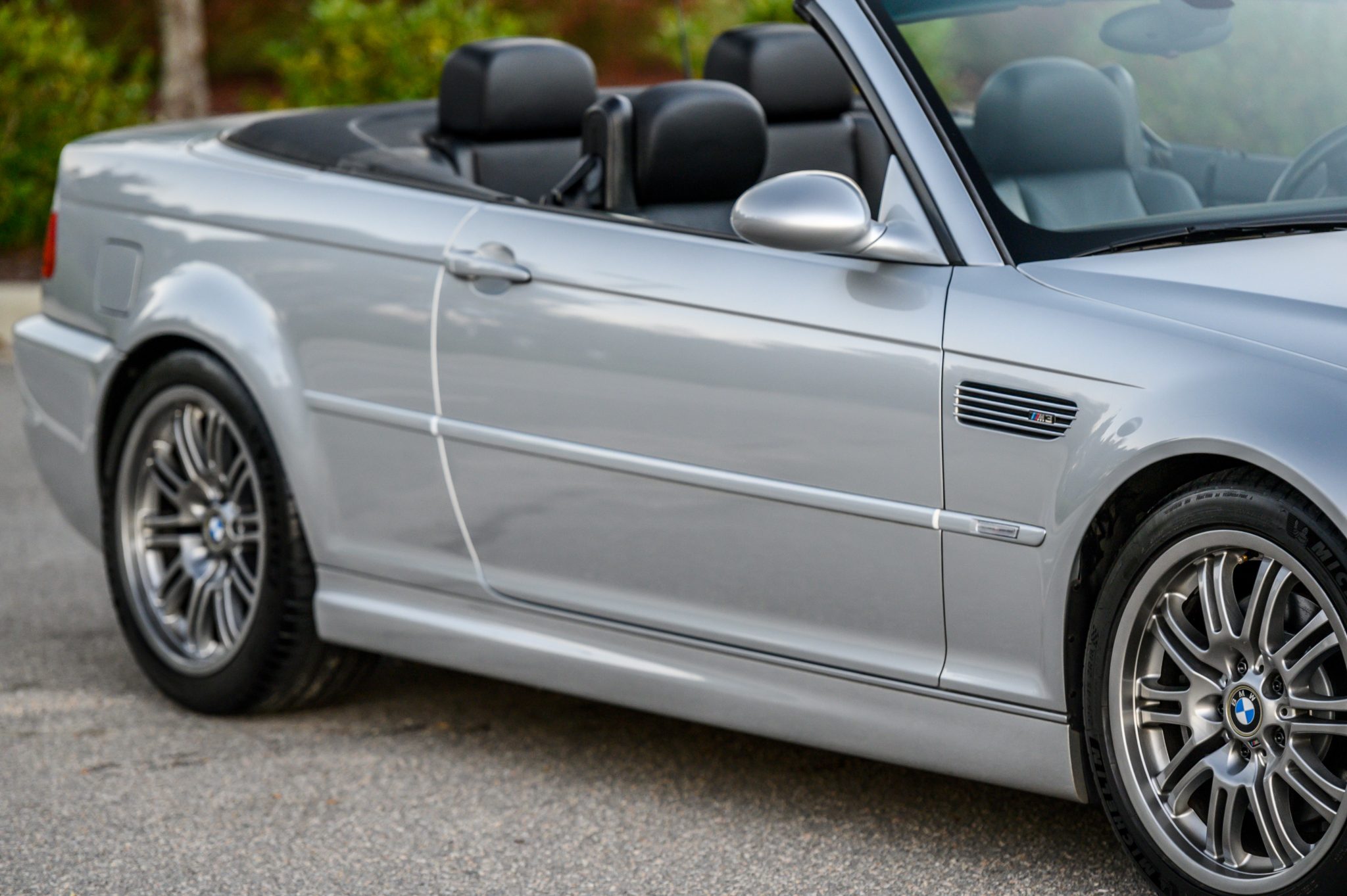 Factory 18″ Style 67 wheels are wrapped in staggered-width Michelin Pilot Sport 4S tires that were reportedly installed by the selling dealer. The car is equipped with Dynamic Stability Control, and the selling dealer states that recent service includes flushing the brake fluid, replacing the trailing arm bushings, and performing an alignment.