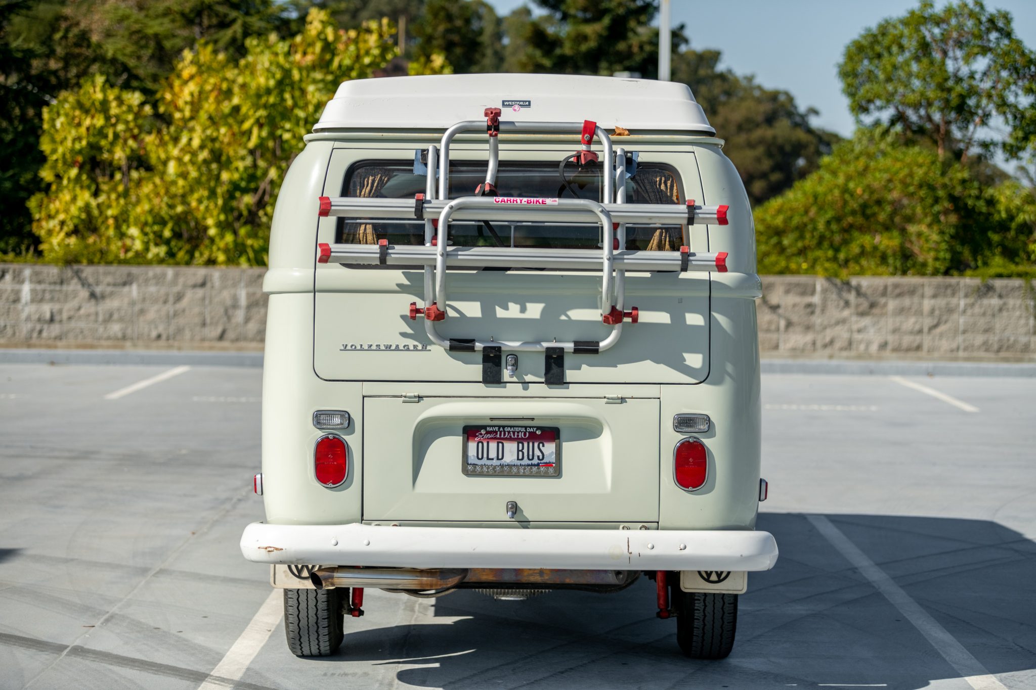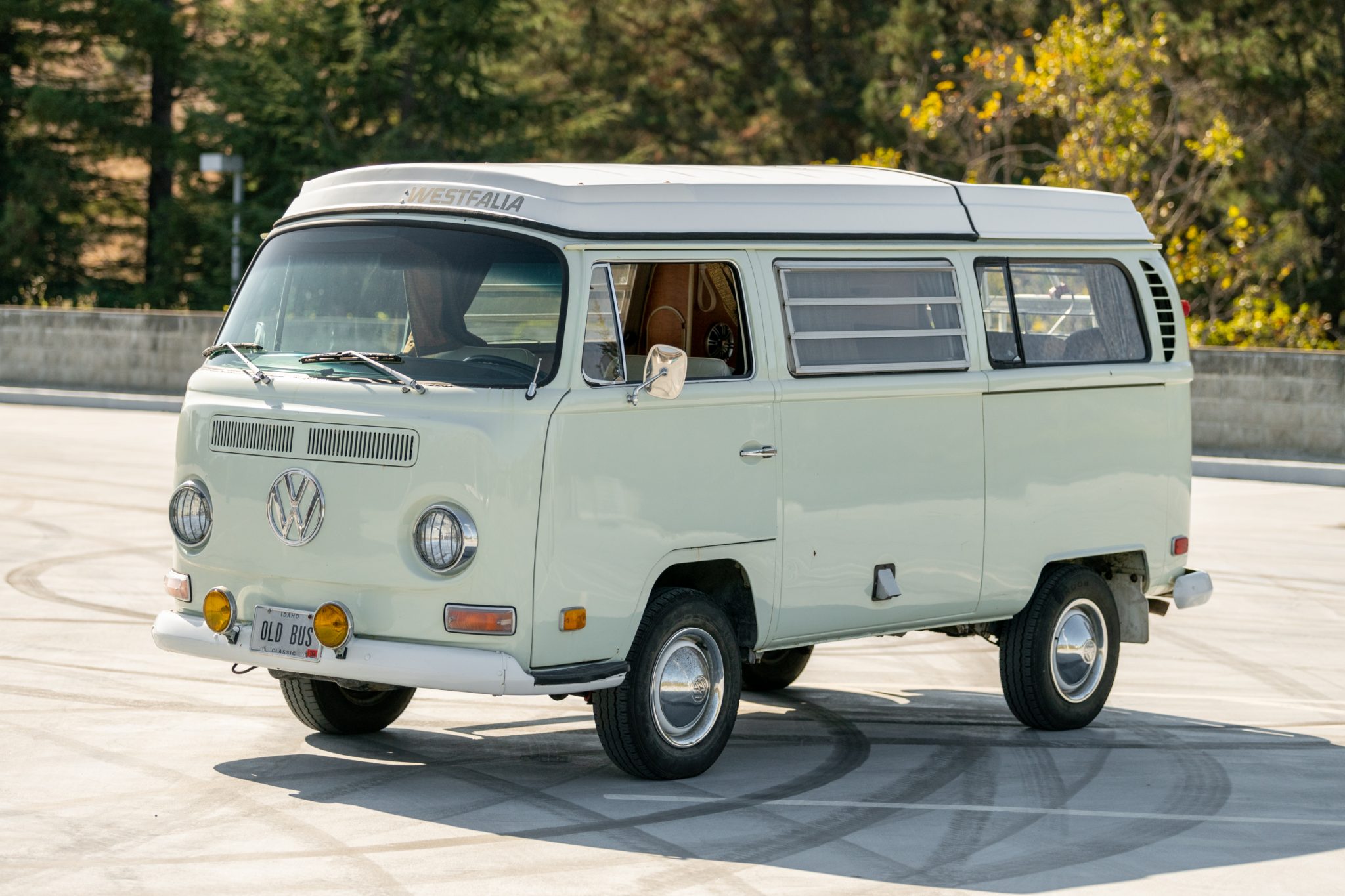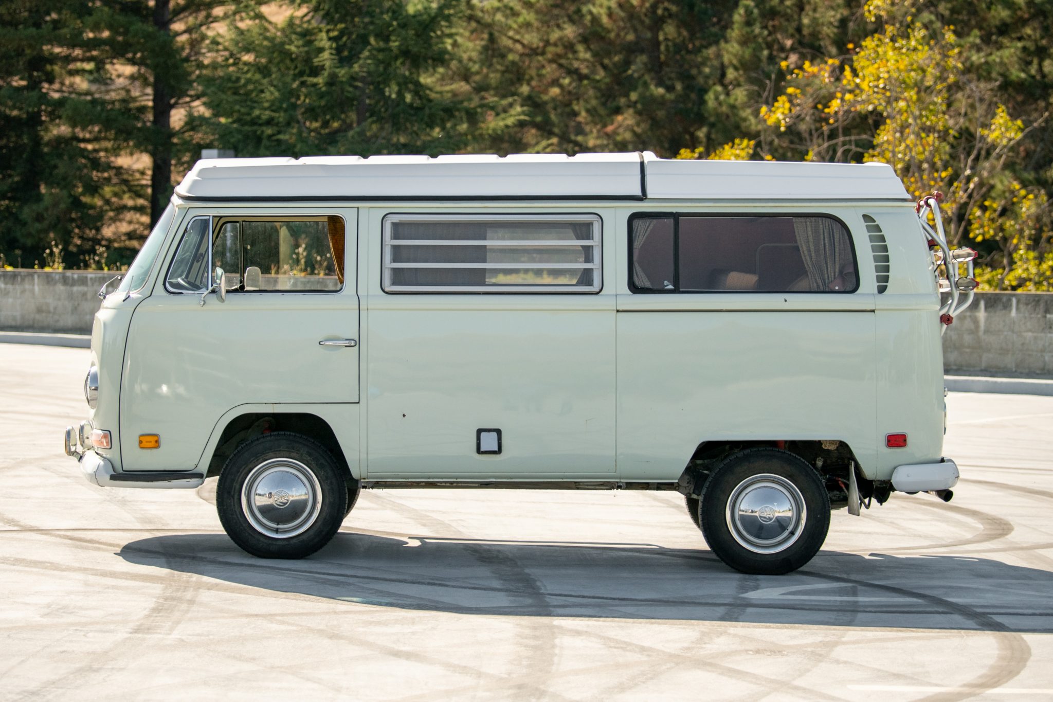 White-painted 14″ steel wheels with polished hubcaps and trim rings are wrapped in 185-series Hankook RA08 tires that the seller notes are approximately 12 years old. The wheels and hubcaps exhibit areas of corrosion and pitting. The front drum brakes were replaced approximately 4k miles ago, at which time the brakes were bled and adjusted. Koni adjustable shocks have been fitted all around, an upsized sway bar has been added, and the seller reports that there is a clunking noise coming from the steering.