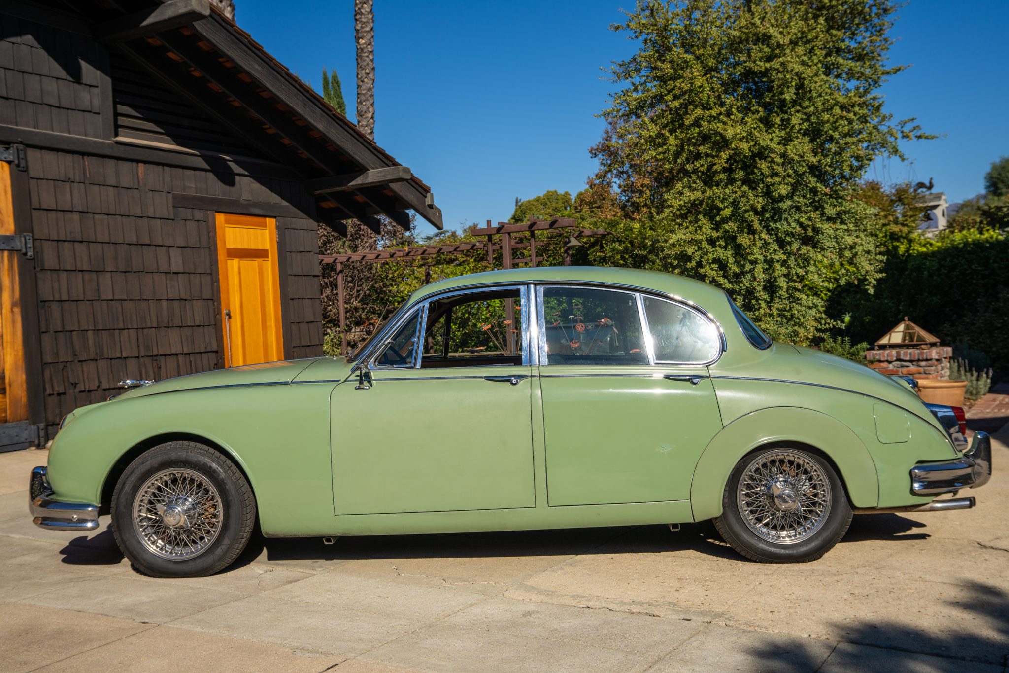 15″ wire wheels are equipped with two-eared knock-off spinners and are mounted with 165/80 Nexen SB-802 tires that were reportedly installed by the seller. The brakes were also serviced during current ownership, and the tie rods, bearings, and ball joints are said to have been replaced. The seller notes the suspension requires additional work.