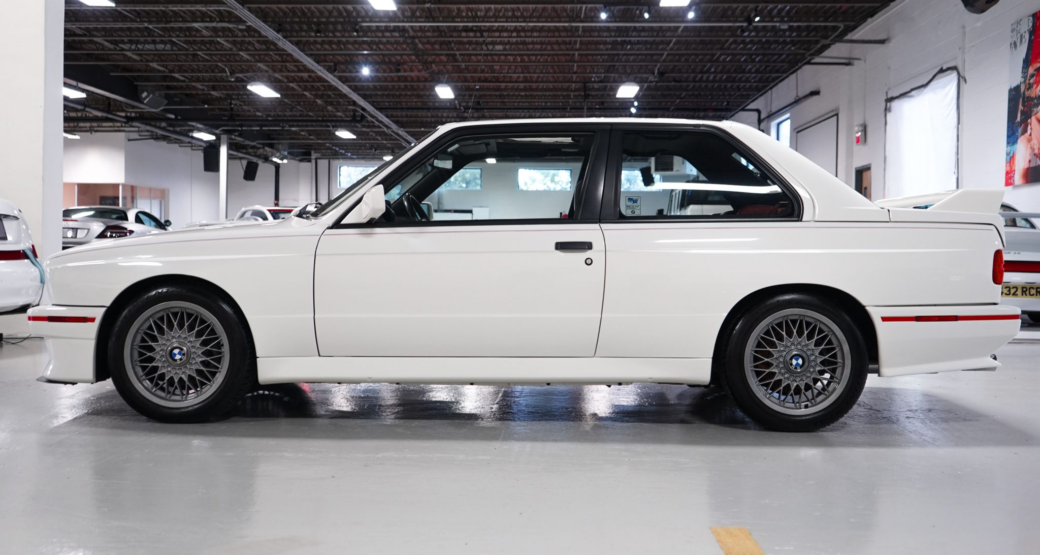 15″ BBS wheels are finished in gray and are wrapped in Continental ExtremeContact tires. Four-wheel ventilated disc brakes were standard equipment, and this example is fitted with a Racing Dynamics front strut tower brace and Bilstein dampers.