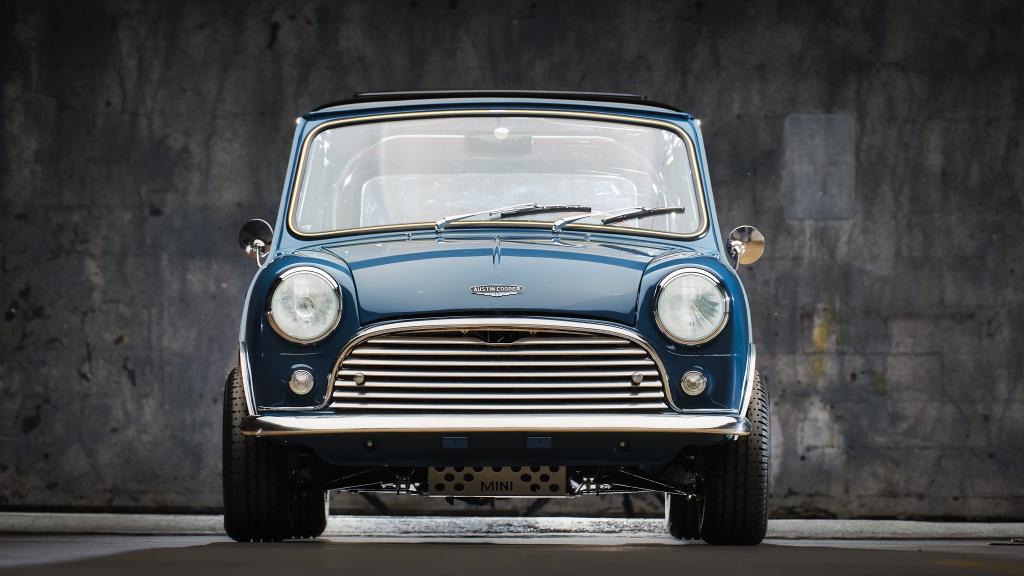 Silver Minilite wheels measure 10″ x 5″ and wear 165/70 Yokohama Advan A-008 HF tires with 2006 date codes. Braking is handled by front discs and finned Cooper S-style rear drums. The car retains Hydrolastic suspension, and new stainless steel lines were fitted along with refinished suspension arms and bags.