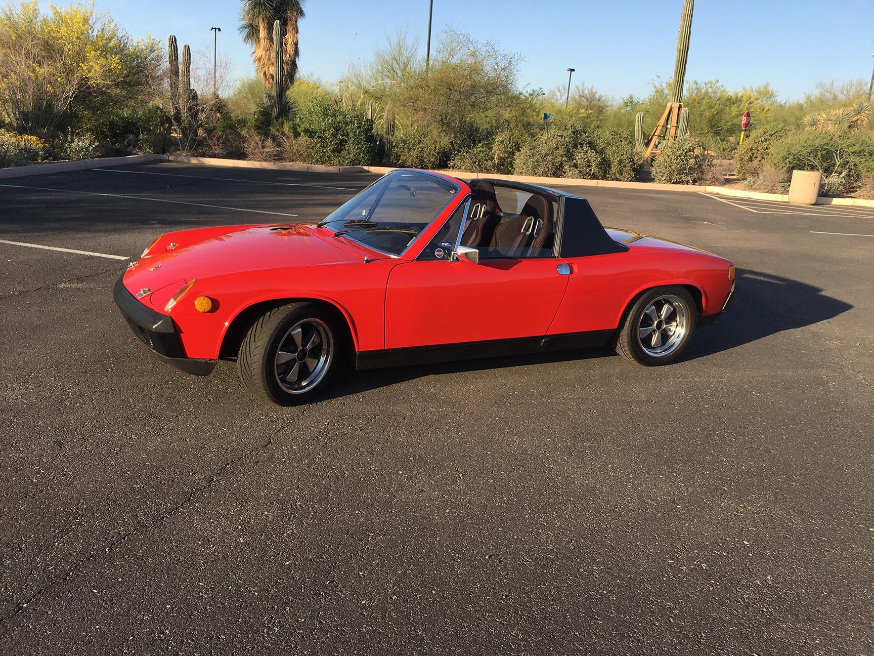 The polished 15×7” Fuchs five-lug alloy wheels are wrapped in 205/50 Nitto Neo Gen tires showing 2018 date codes. Braking is through four-wheel discs with cross-drilled rotors and 911SC calipers up front. A space-saver alloy spare is mounted in the front storage area, and scratches on the wheel lips can be seen in the gallery. Suspension modifications include the following: