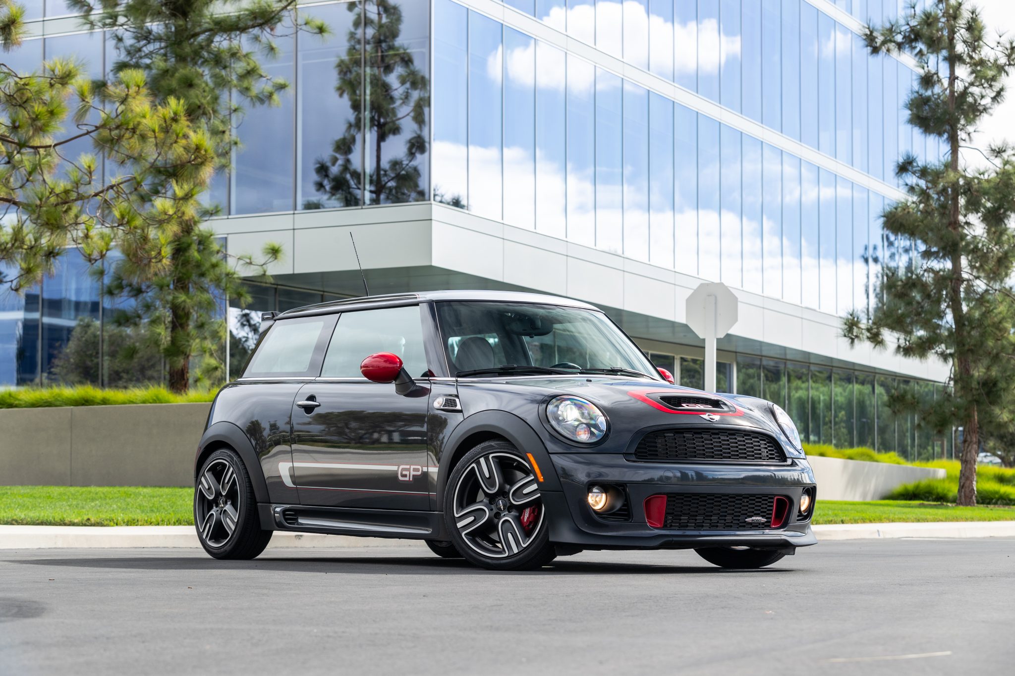 GP-specific 17″ wheels feature a two-tone finish and are mounted with 215/40 Hankook Ventus V12 tires. The GP is equipped with height-adjustable coilover assemblies, and braking is handled by six-piston Brembo front calipers with single-piston rear calipers acting on 13″ front and 11″ rear rotors. Replacement brake pads and rotors were installed in March 2019. The original set of unmounted Kumho Ecsta tires are included in the sale and were reportedly used for less than 100 miles.