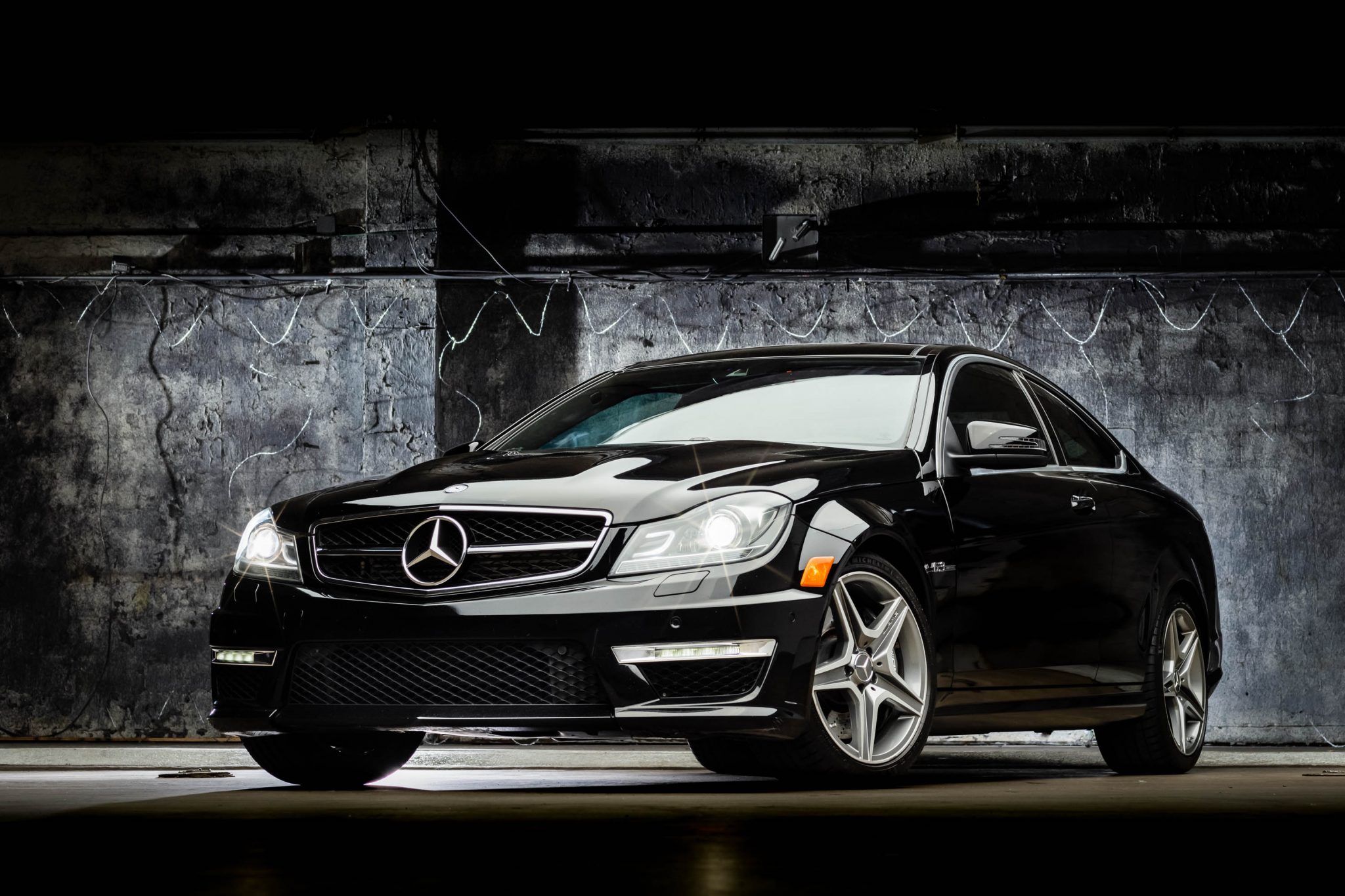 Factory 18″ wheels are mounted with Michelin Pilot Sport 4S tires measuring 225/40 up front and 255/35 out back. Braking is handled by multi-piston AMG calipers and cross-drilled and ventilated rotors at all four corners, and the car received replacement brake pads at all four corners in June 2020.