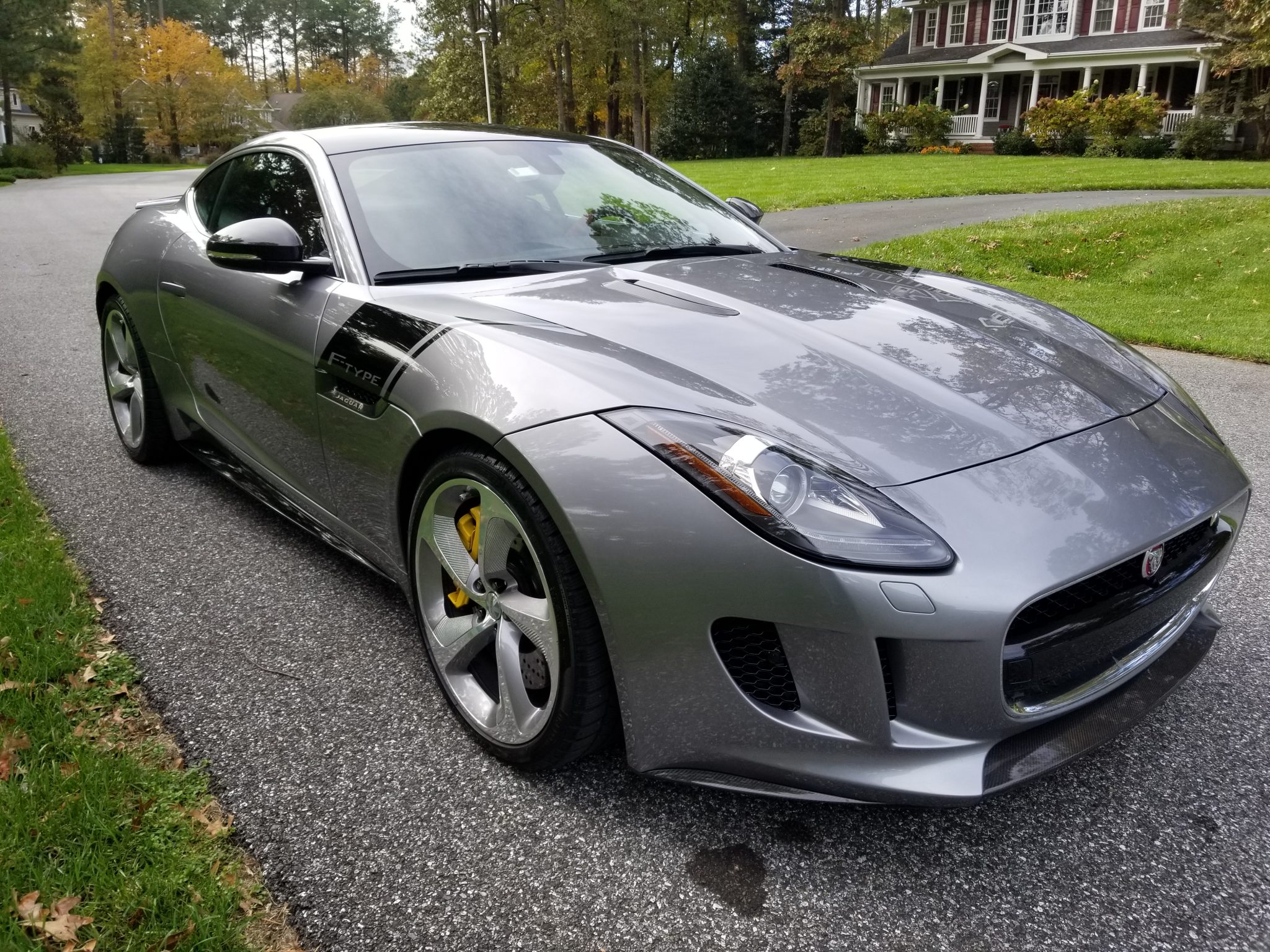 Jaguar accessory forged 20″ alloy wheels feature carbon-fiber inserts and wear 255/35 front and 295/30 rear Pirelli P Zero all-season tires. Additional equipment includes adaptive suspension, stability control, and a torque-vectoring brake system.