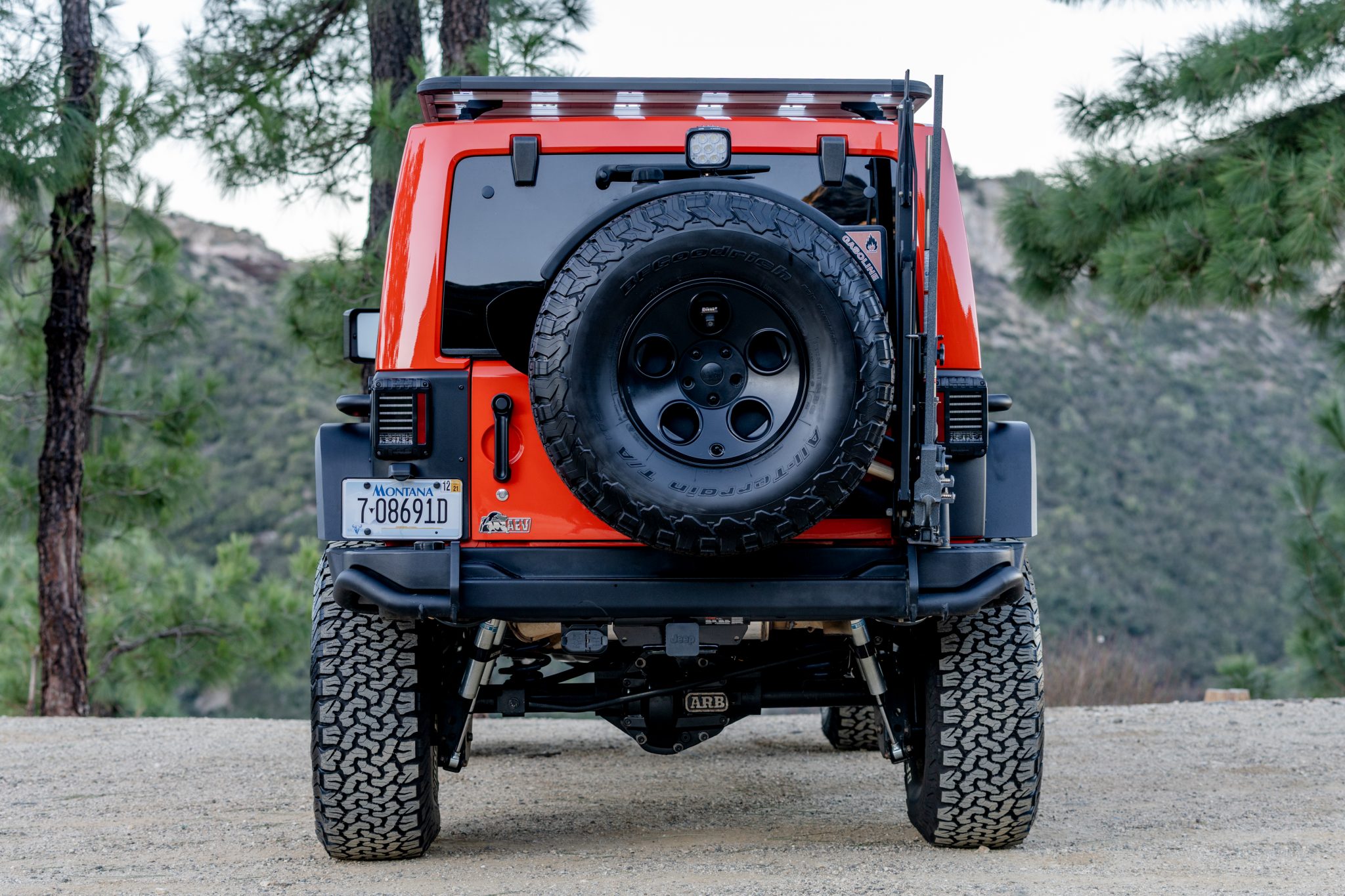 17″ AEV Savegre wheels wear 37″ BFGoodrich All-Terrain T/A KO2 tires. The suspension has been modified with an AEV 4.5″ lift kit, AEV High-Capacity springs, and adjustable front and rear control arms. Reid Racing heavy-duty High Steer knuckles have been installed, and the Baer brake kit features drilled and slotted rotors as well as red multi-piston calipers all around. Service under current ownership is said to have included replacing the rear shocks, rear sway bar end links, rear brake calipers, and front and rear brake pads.