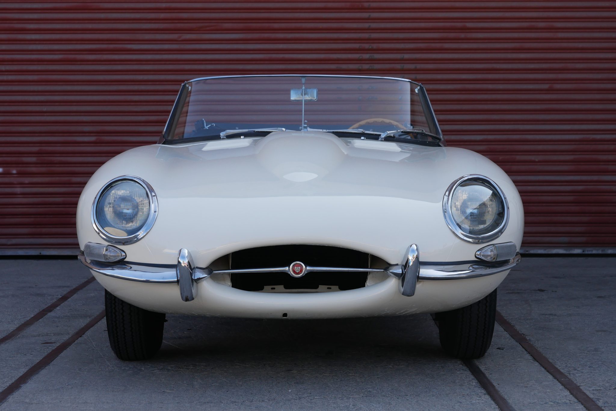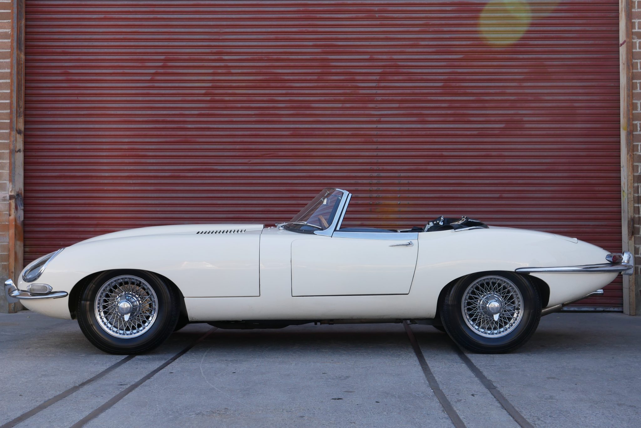 Chrome wire wheels are fixed with two-eared knock-off nuts and wear Coker Classic tires. Four-wheel brakes are mounted outboard at the front and inboard at the rear. The black soft top is said to be a replacement and stows behind the front seats when folded.