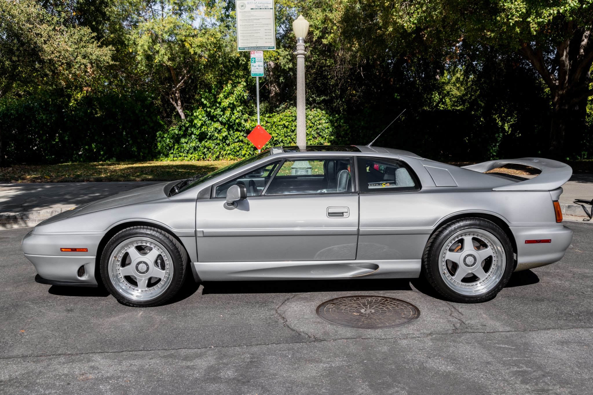 Multi-piece 17″ and 18″ OZ Racing wheels wear staggered-width Sumitomo HTR Z III tires. The four-wheel disc brakes feature Brembo calipers up front, and the front pads and rotors were reportedly replaced in 2018. The brake fluid was flushed in September 2020.