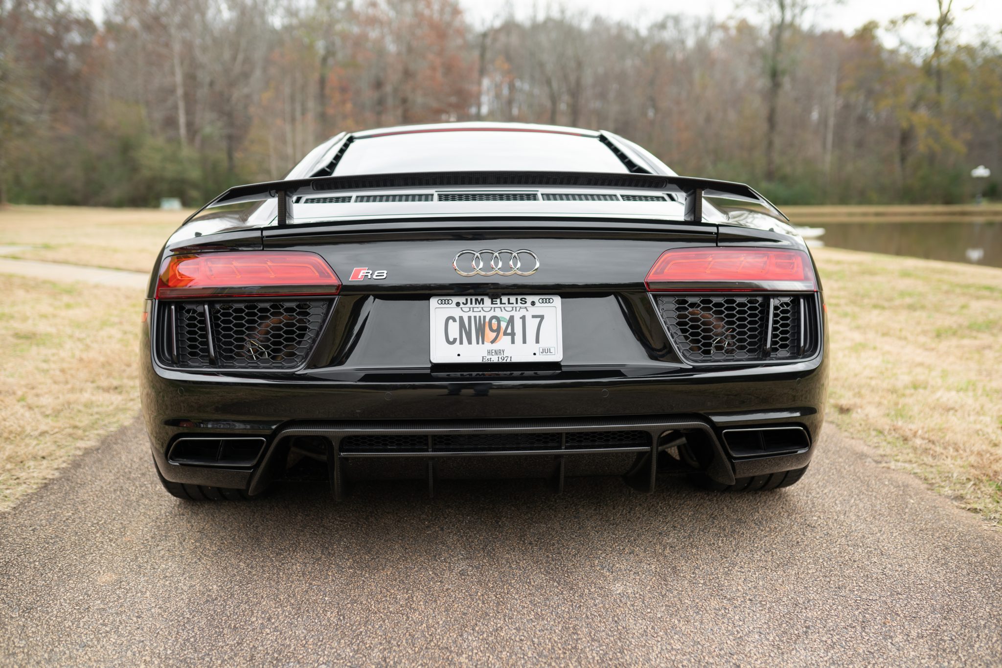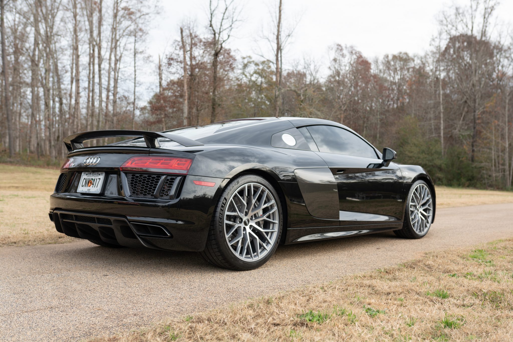 Forged 20″ Y-design wheels are wrapped in Michelin Pilot Sport 4S tires. The brake system features silver-finished calipers with R8 logos over carbon-ceramic rotors.