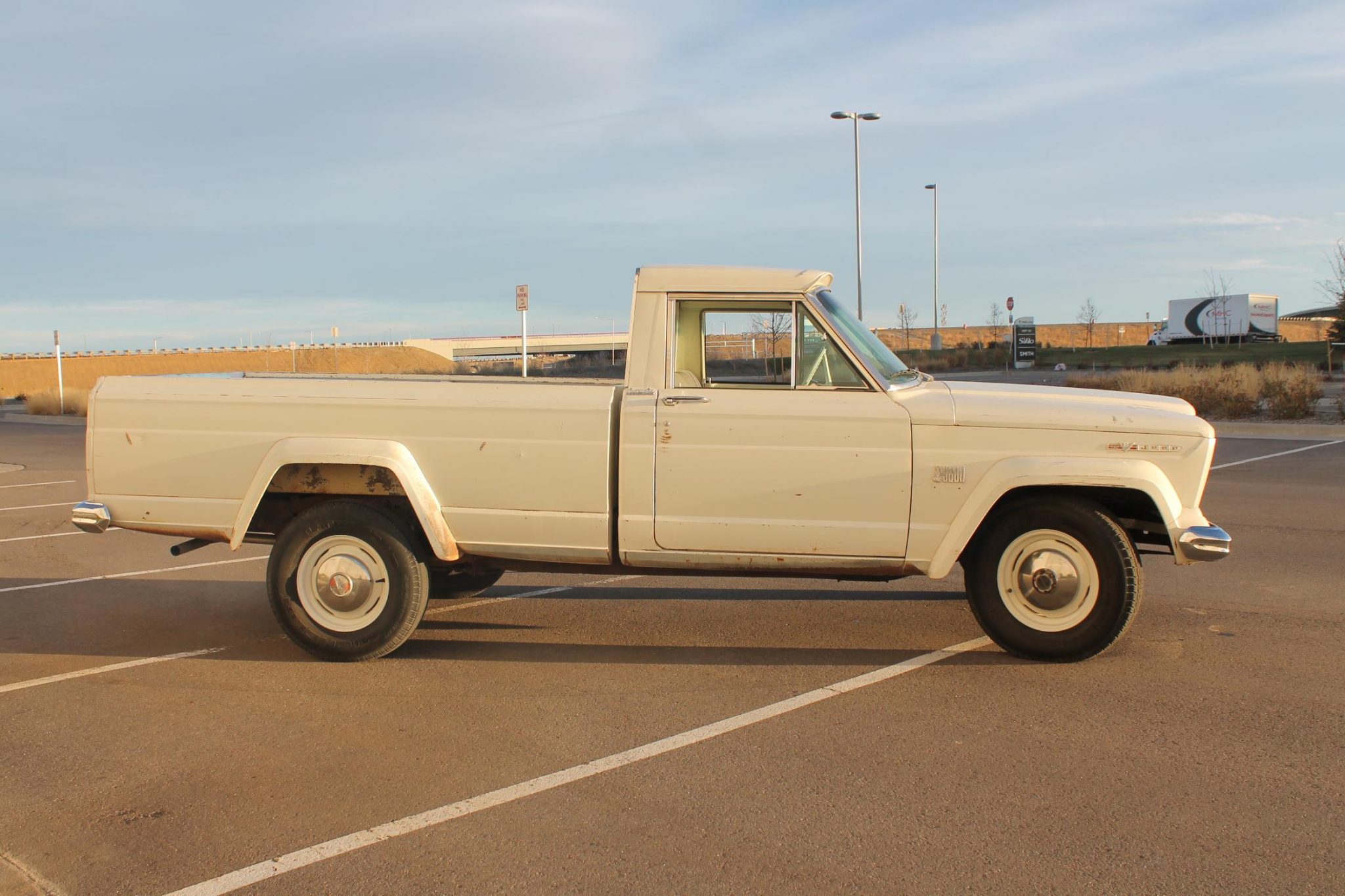 Color-coordinated 16″ steel wheels wear 215/85 Michelin LTX A/S tires that have visible sidewall cracks. Factory power steeing and Warn locking front hubs are fitted, and braking power is supplied by unassisted four-wheel drums.