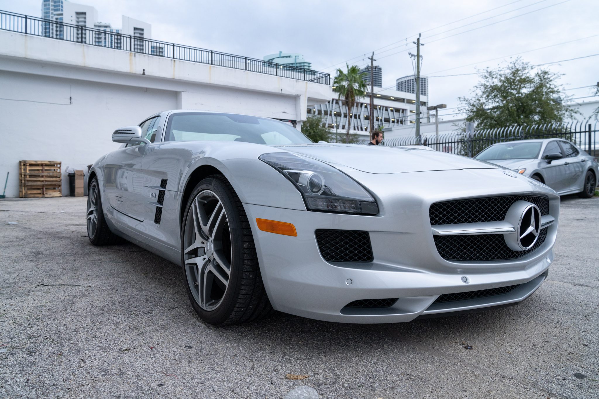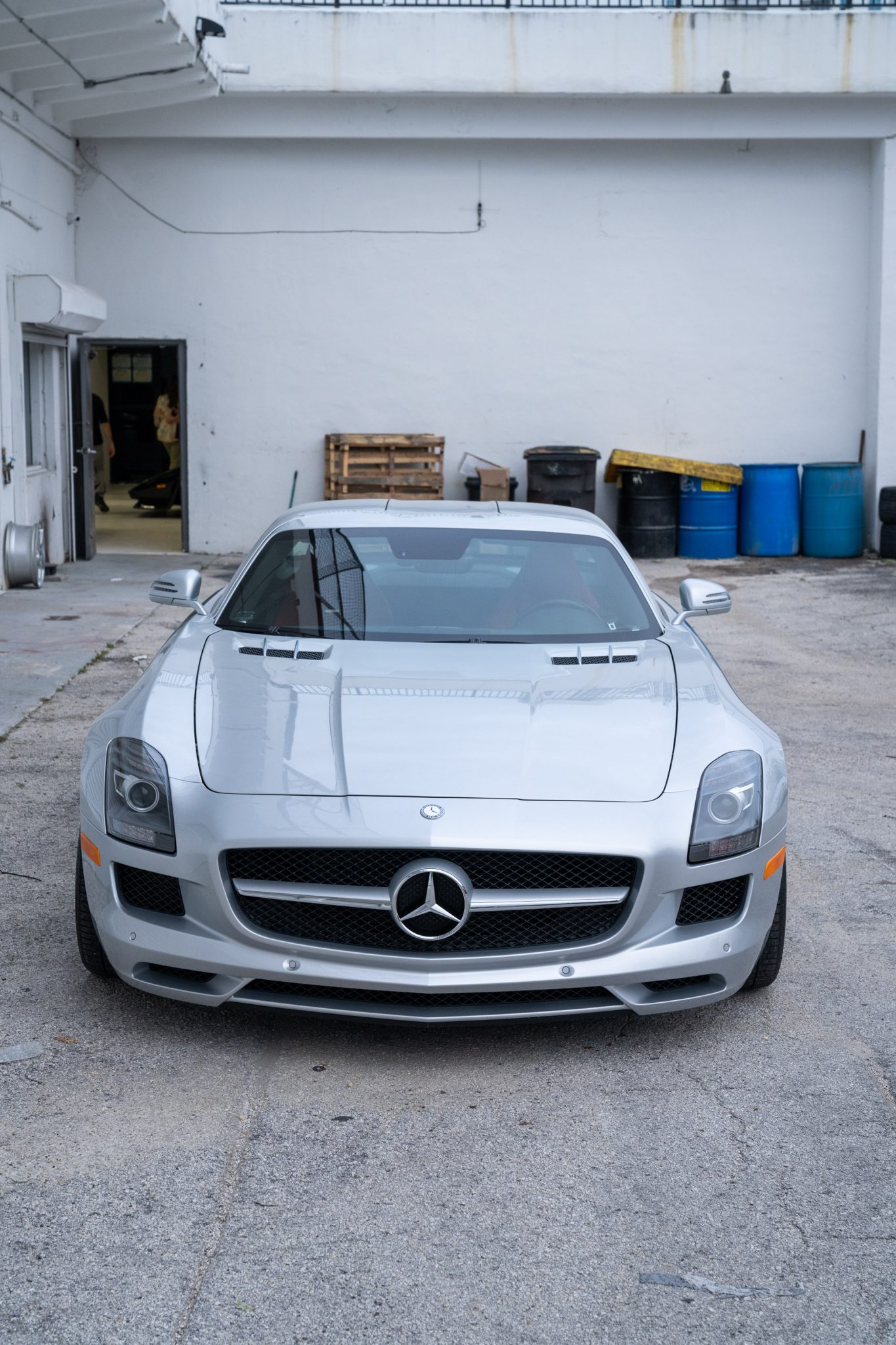 Optional AMG twin five-spoke forged wheels measure 19″ in diameter up front and 20″ out back and are mounted with Continental ContiSportContact tires showing 2009 and 2010 date codes. A set of new tires will accompany the sale according to the selling dealer. The car is equipped with the AMG Performance Suspension System and braking is handled by cross-drilled and slotted two-piece rotors with six-piston front and four-piston rear calipers.