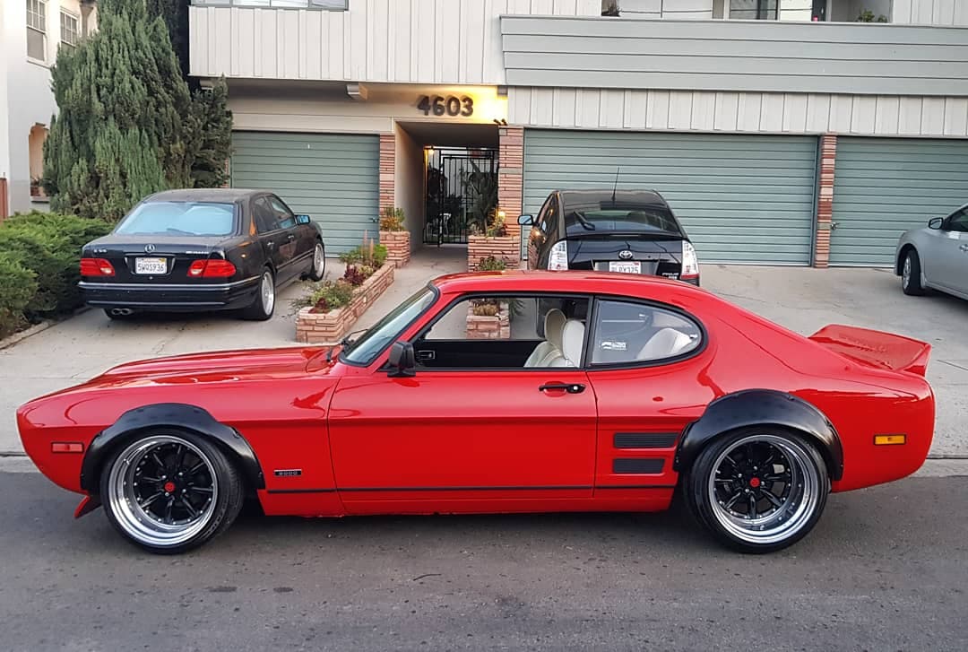 Black-painted 17″ RS Watanabe wheels wear polished lips, red center caps, and Pirelli P Zero Nero GT tires. Adjustable BC Racing coilovers with adjustable top mounts are fitted up front, and QA1 shocks are combined with leaf springs to support the live rear axle. Braking is handled by front discs and rear drums.