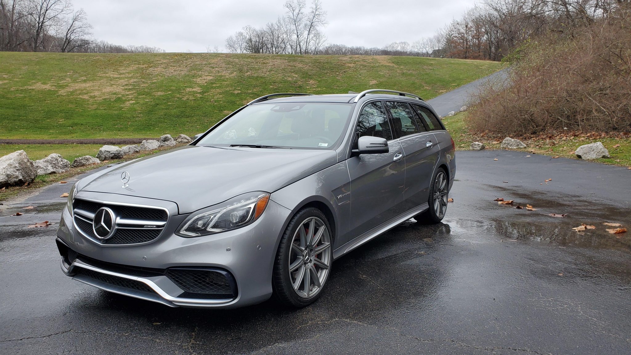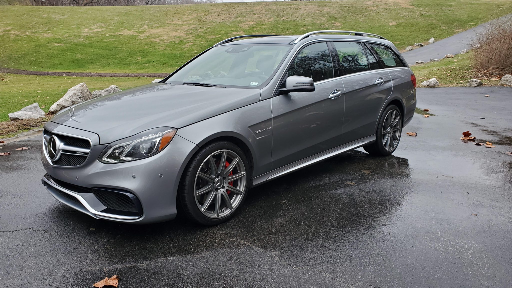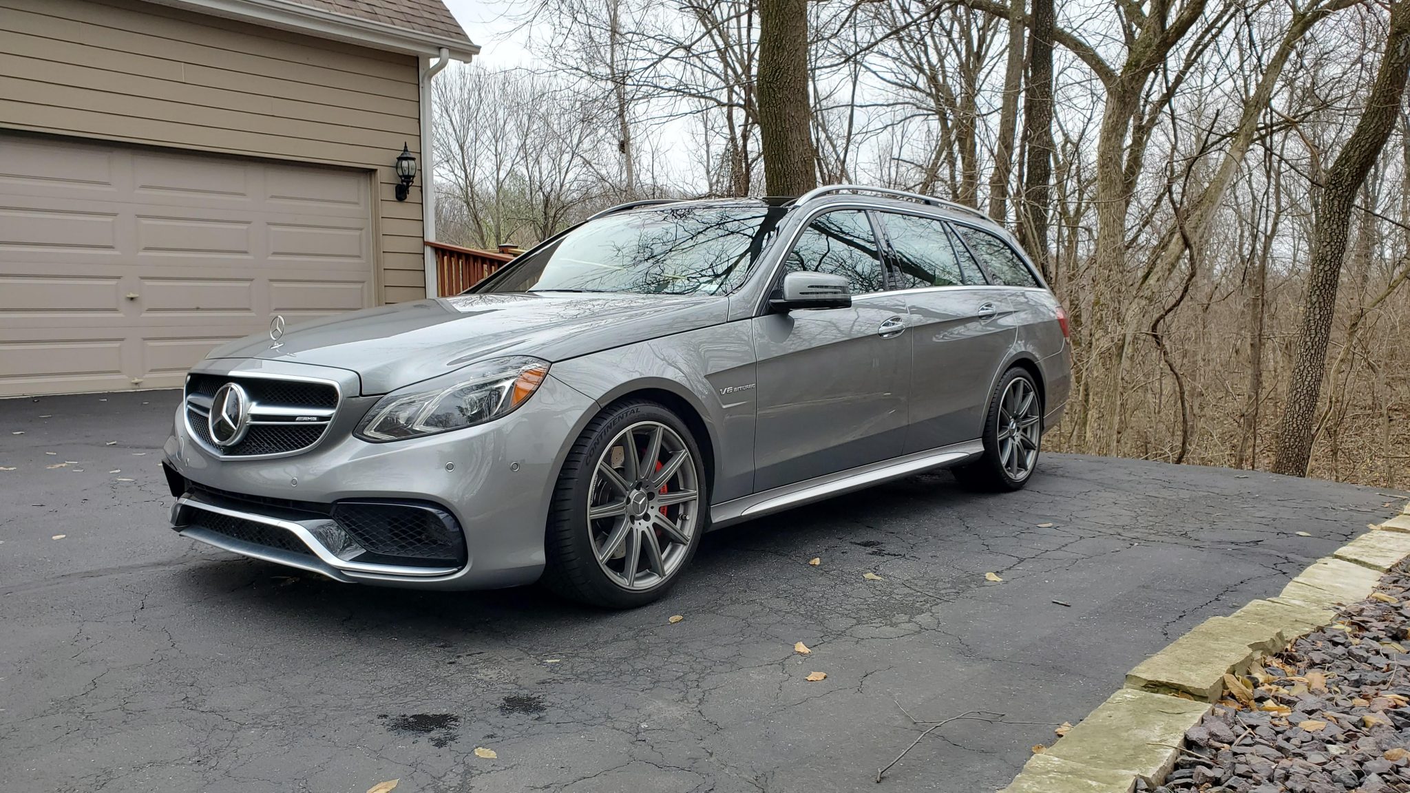 AMG 19″ ten-spoke wheels were refinished during current ownership and are wrapped in Continental ExtremeContact tires that the seller notes were installed in January 2019. Braking is provided by red-finished multi-piston calipers and cross-drilled and slotted rotors all around. The Driver Assistance package adds active blind spot assistance, active lane keeping assistance, cross-traffic assistance, pre-safe braking functions with pedestrian recognition, and Distronic Plus cruise control with steering assist.