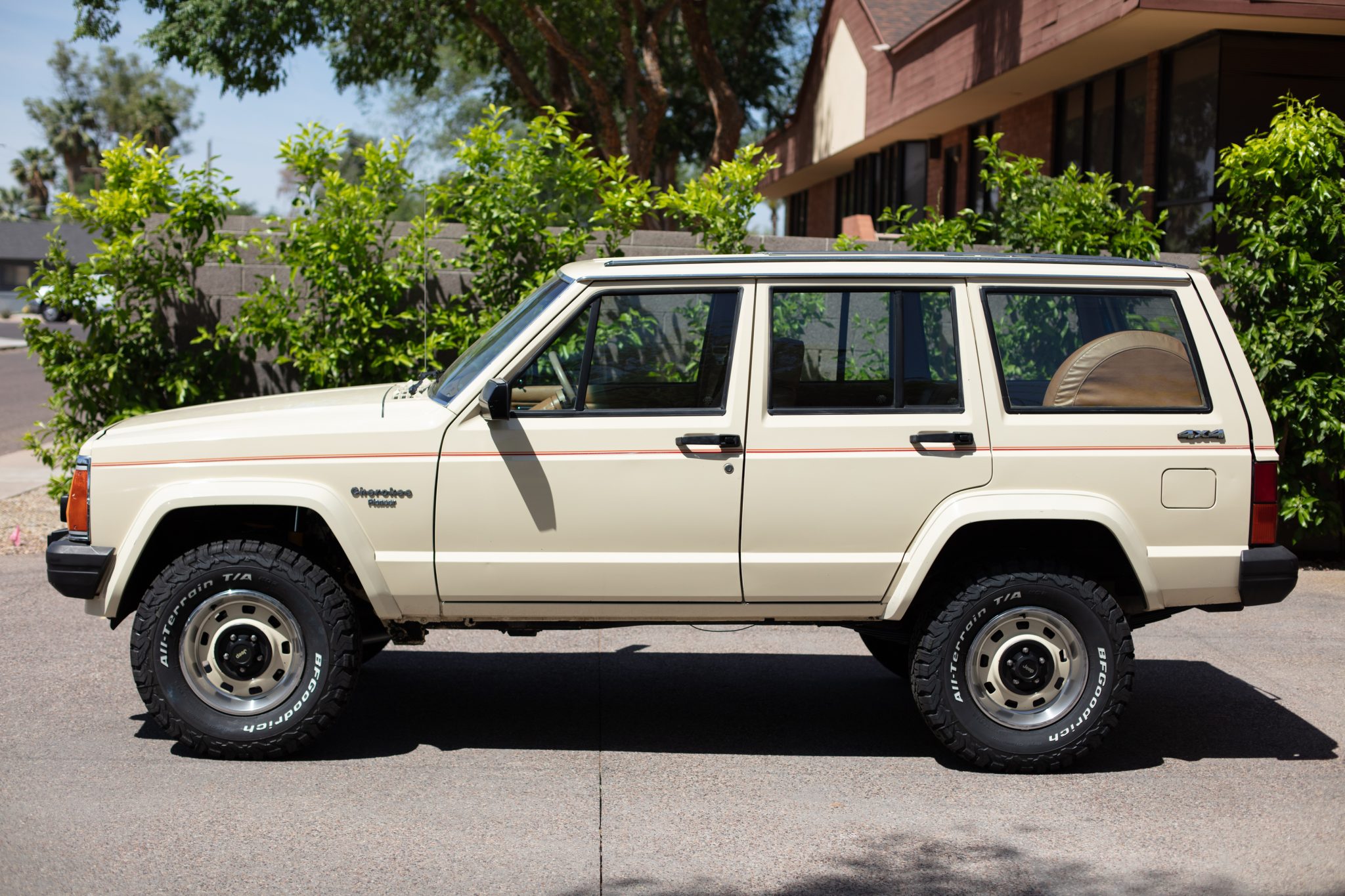 Color-matched 15″ steel wheels wear polished trim rings and 30×9.5″ BFGoodrich All-Terrain T/A KO2 tires showing 2021 date codes. An Old Man Emu suspension lift kit consisting of springs and shocks was installed under current ownership, along with new front control arms.
