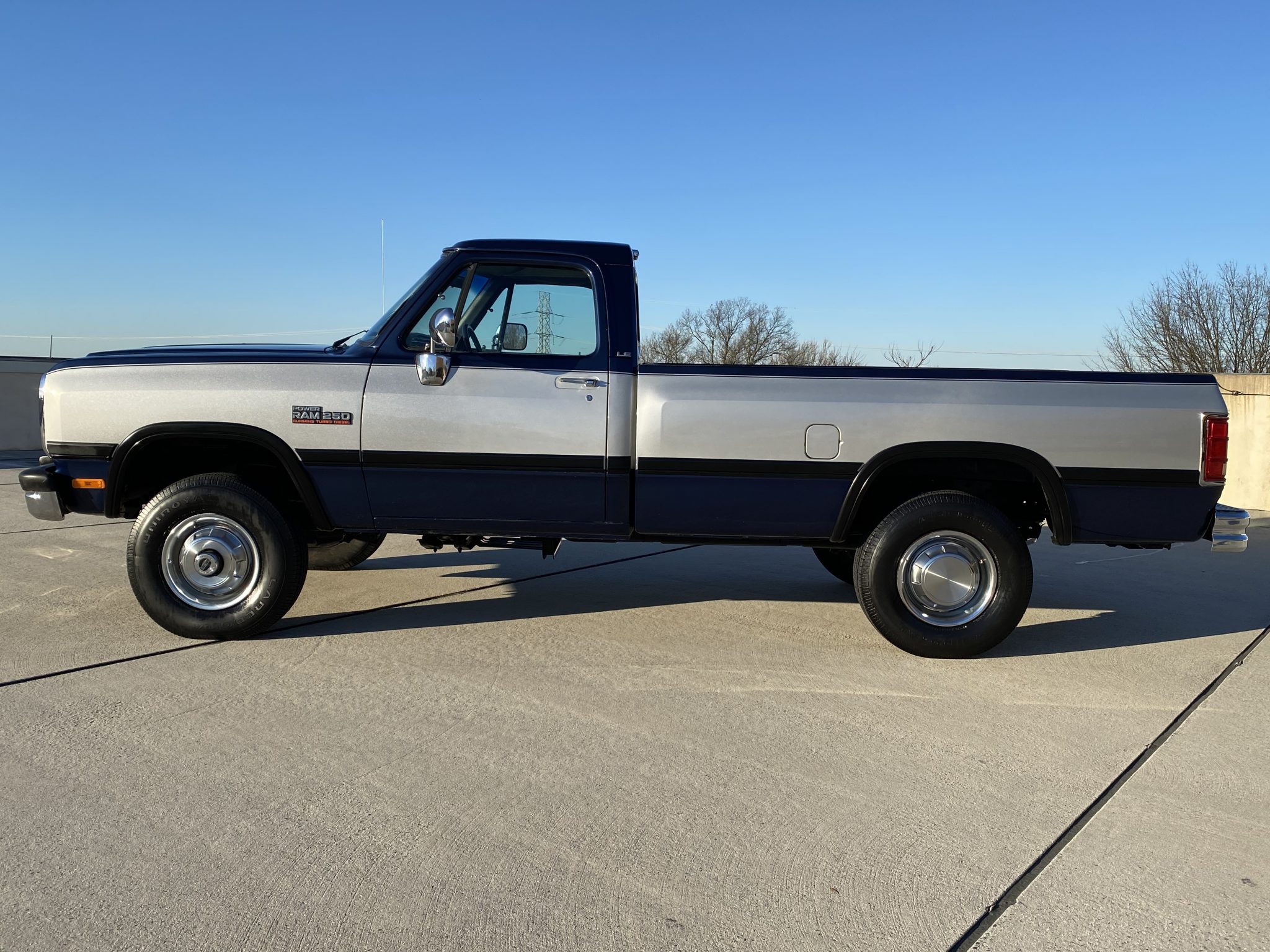 Steel 16″ wheels wear polished hubcaps and Uniroyal Laredo HD/H tires. The truck is equipped with a Dana M210 front axle, a 3.55:1 Dana M70 rear axle, a transfer case skid plate, and anti-lock brakes.