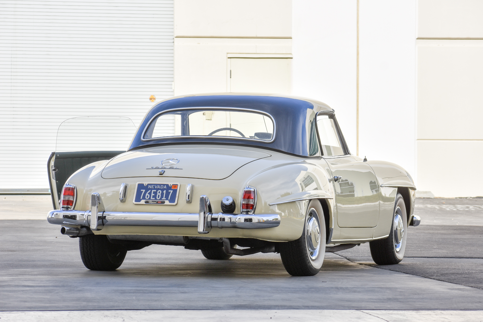 Steel 13″ wheels are finished in the exterior color and are fitted with body-color hubcaps, trim rings, and BFGoodrich Silvertown radial whitewall tires. Braking is handled by four-wheel drums.