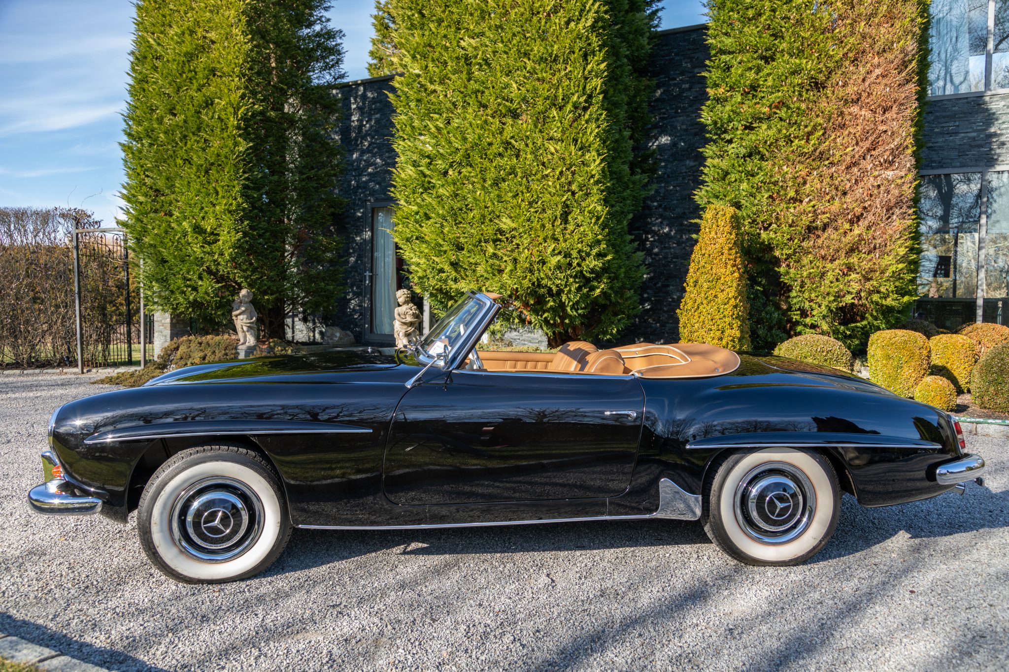 Steel 13″ wheels wear chrome hubcaps with body-colored centers as well as beauty rings, and are mounted with 185/80 BFGoodrich Silvertown radial whitewall tires that were installed during the seller’s ownership.