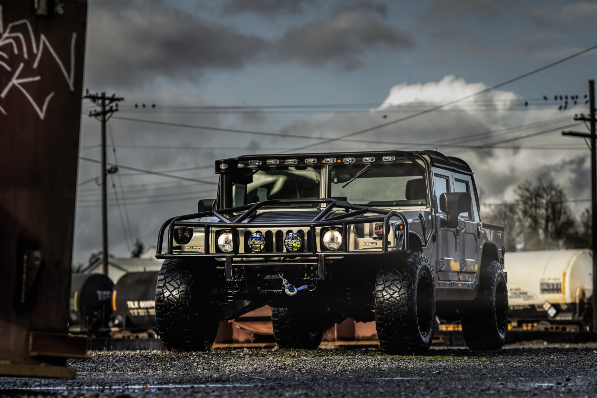 20″ Fuel alloy wheels are finished in black and are wrapped in 37×13.5″ Nitto Ridge Grappler all-terrain tires, and the central tire inflation system has been disconnected. Braking is handled by inboard-mounted disc brakes at all four corners, and the truck rides on four-wheel independent suspension with portal axles. Service performed in 2020 included replacement front brake pads and a brake fluid exchange. The selling dealer states that the factory CTIS-compatible wheels will accompany the truck, as will a front suspension leveling kit.