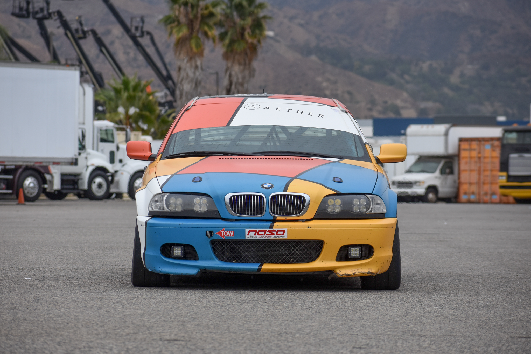 Black-finished 17″ wheels secured on long wheel studs and with spacers up front wear Hankook Ventus racing tires, with three additional sets of tires and wheels included in the sale. Equipment includes adjustable sway bars, rear camber arms, and Motion Control Suspension two-way coilovers, along with reinforced front and rear subframes, modified and reinforced strut towers, Ground Control camber/caster plates, solid front control arm bushings, and polyurethane rear trailing arm bushings. Braking power is provided by hardened rotors with PFC brake pads.