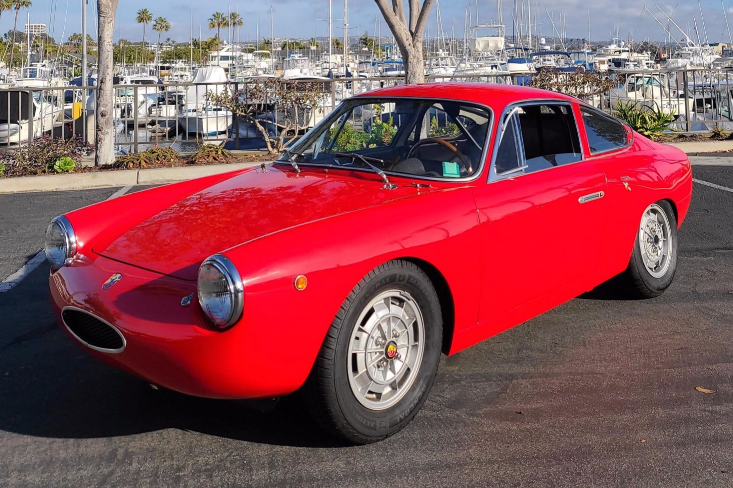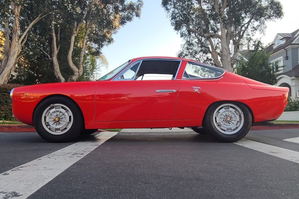 An external battery cutoff switch is located on the right sail panel, and a North Carolina inspection decal from 1968 is affixed to the windshield. Four-lug 13″ wheels were manufactured by Campagnolo for Abarth and wear General Altimax tires. Braking is from Girling discs at all four wheels, and suspension includes a transverse leaf spring up front as well as coil springs in the rear. The brake fluid was flushed in September 2020.