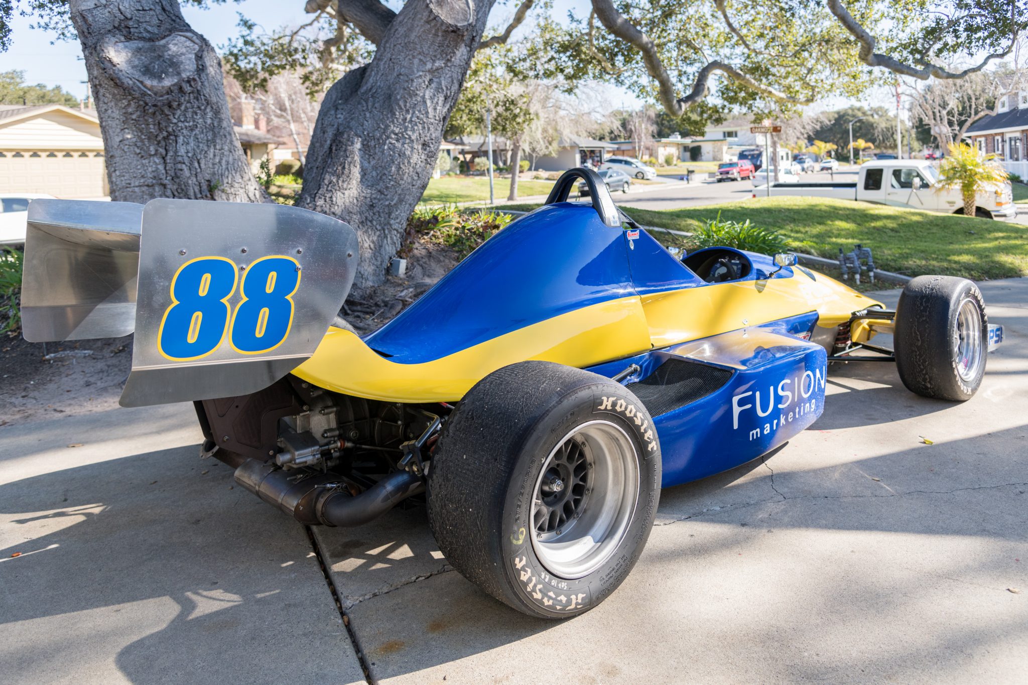 Staggered-width BBS wheels wear Hoosier racing slicks measuring 210/550R-13 on the front and 275/570R-13 at the rear. The welded tube chassis is fitted with adjustable front and rear anti-roll bars, tubular control arms, adjustable coilovers at all four corners, and four-wheel ventilated disc brakes with a bias-adjusting knob on the dash. Four spare wheels fitted with Hoosier tires will also be included in the sale, as shown in the gallery.