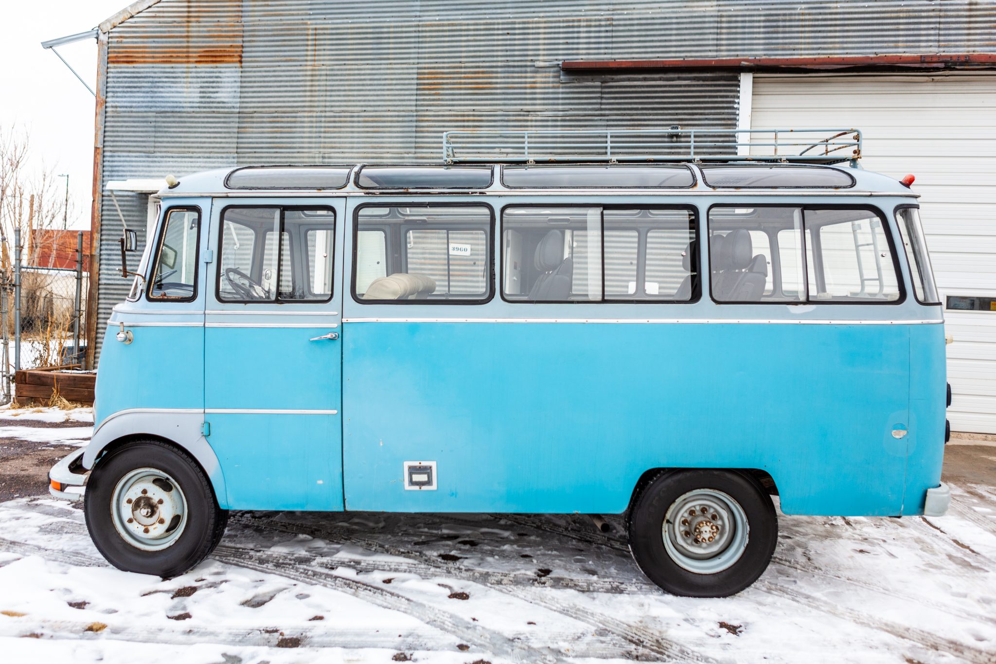The blue-painted steel wheels show corrosion and are wrapped in Firestone Transforce HT tires. The bus features a ladder-frame chassis riding on front and rear solid axles, and stopping power is provided by four-wheel hydraulic drums.
